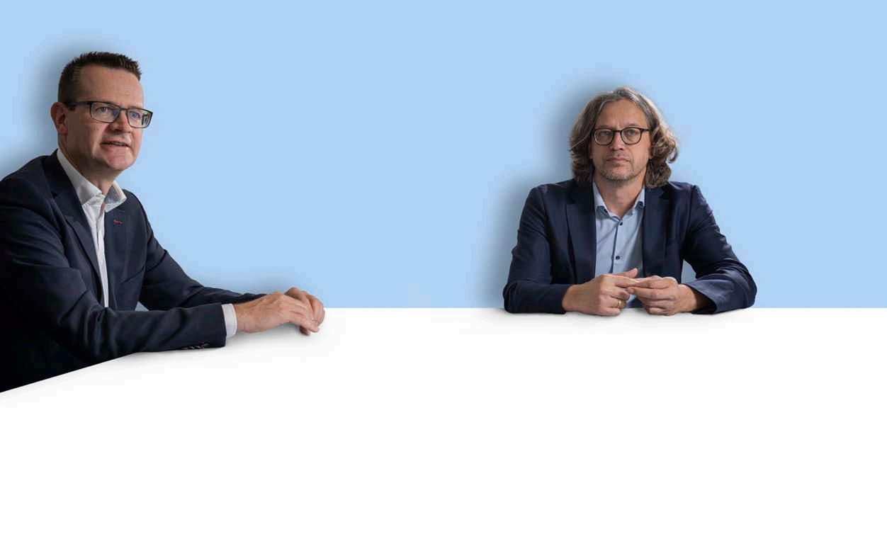 Thomas Justus Schmidt, Leiter des PSIForschungsbereichs Energie und Umwelt (links) und Kernenergieforscher Andreas Pautz, Leiter des Bereichs Nukleare Energie und Sicherheit.