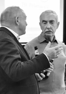 kunft noch öfter lesen wird. Paul Böhm und die Zuhörer dankten es mit langem Applaus. Da sich die meisten Redner samt Laudator Roland Weber auch an die unausgesprochene Vorgabe „kurz“ hielten, entwickelte sich der Abend abwechslungsreich, witzig und ganz im Sinne des Jubilars, der zu seiner aktiven Präsidentschaftszeit immer auf die Einhaltung von max. 90 Minuten für eine Sitzung pochte. Das er dabei die meiste Zeit für sich selbst in Anspruch nahm, verzeiht man ihm bis heute, denn seine Erfolge gaben ihm immer Recht. Hans Jochen Matenaer aus Dossenheim, einer der langjährigen Weggefährten, u.a. während der 16- jährigen gemeinsamen politischen Arbeit in Dossenheim, brachte es in seiner Laudatio zum Ausdruck. „Wenn 28 Jahre nach dem Ende der Bürgermeister Amtszeit die Dossenheimer Musikkapelle in großer Mannschaftsstärke zu Ehren von Peters 80- jährigem Geburtstag vor dem Haus aufspielt, dann hat das eine Aussagekraft auf die Beliebtheit und den Respekt den Peter bis heute auch in Dossenheim genießt. Die Würdigung des Jubilars seitens des TSV Birkenau übernahm der Vorsitzende des Fördervereins Roland Weber. Eigentlich hätte er Prof. Dr. Peter Kadel an seiner Seite gehabt, der jedoch aufgrund Krankheit passen musste. Er erinnerte an ein paar Anekdoten von Peters Schaffen beim TSV und hatte dabei die in den Vordergrund gestellt, die man eher seltener über den Jubilar gehört hatte. Walter Stein,