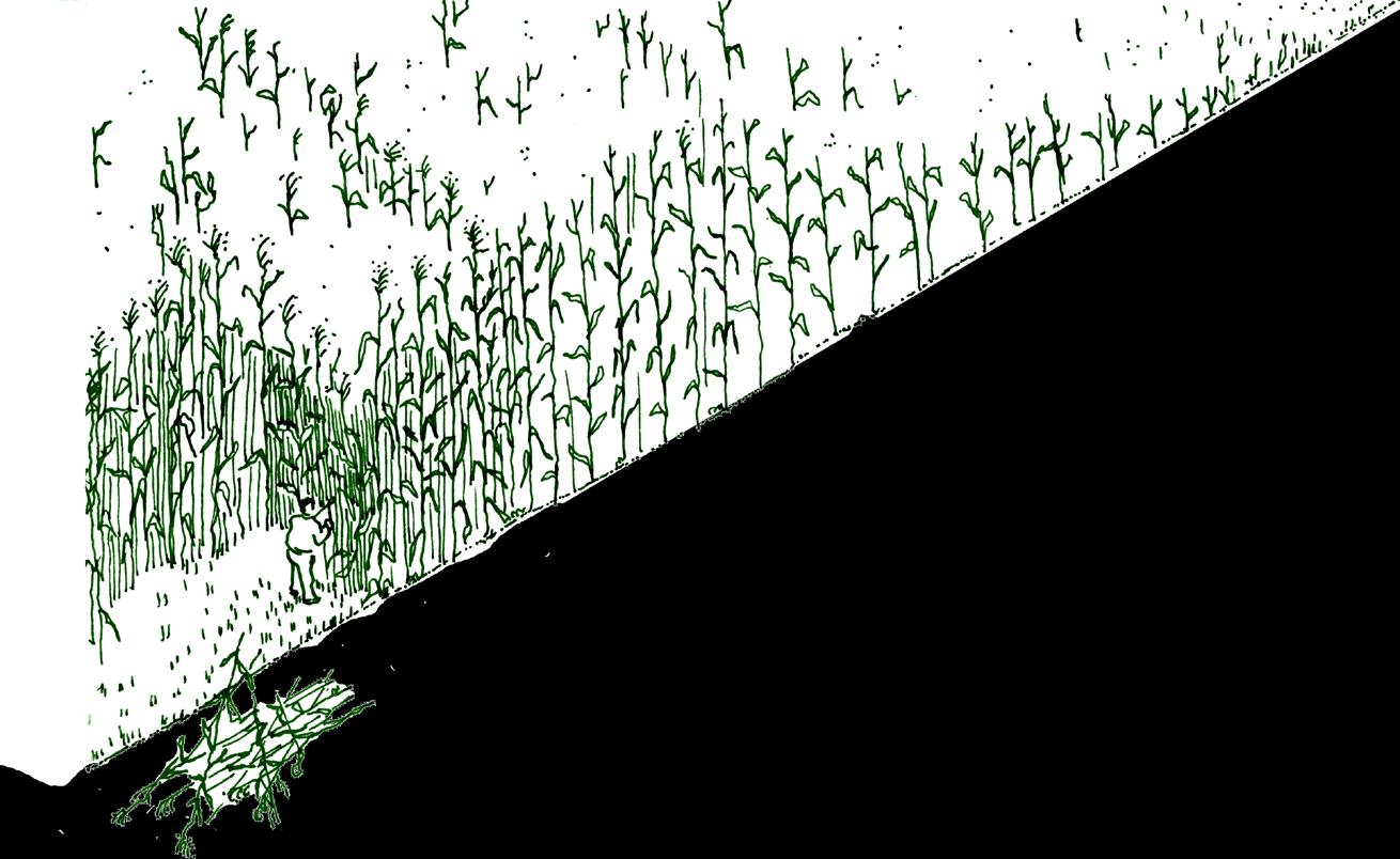 L'énigmatique trou d'une dizaine de mètres de profondeur et de trois hectares de surface au sud de la parcelle est utilisé pour contenir une culture d'arundodonax . Un grand couvert de chaume vient épouser la forme arrondie de ce trou et abriter une fabrique d'anches et une école de musique. L'idée est de rendre à la ville cette filière à travers cette grande figure paysagère.
