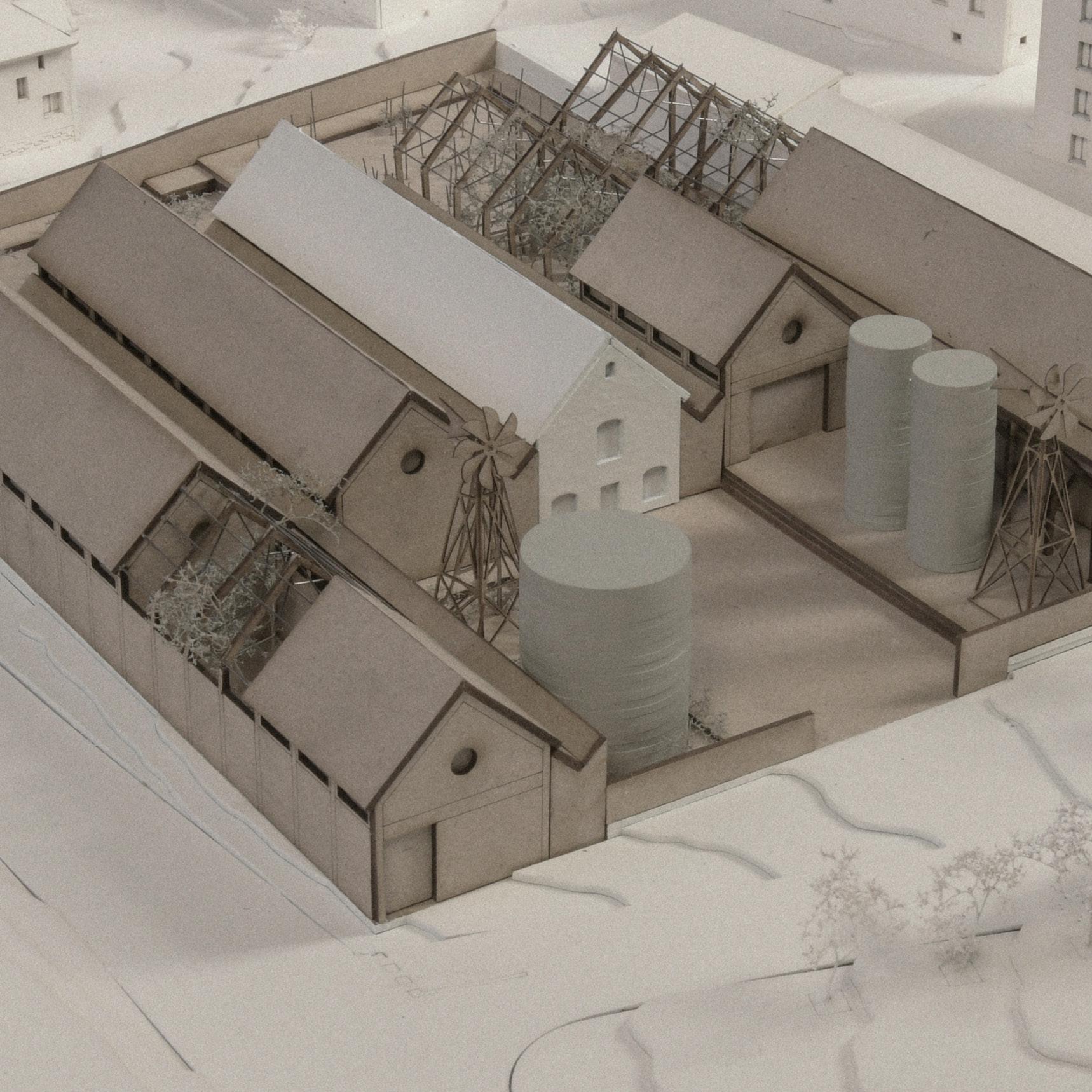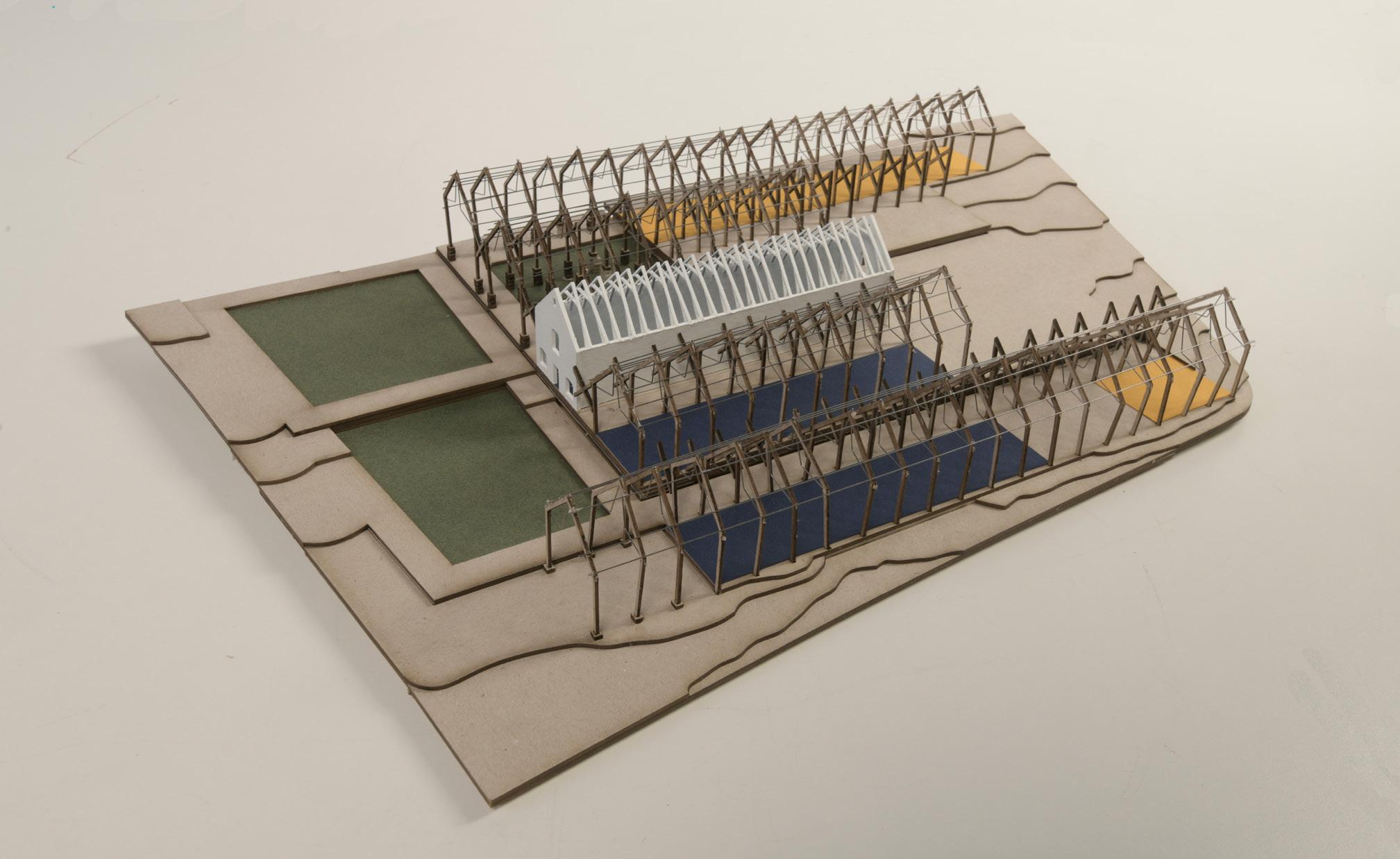 L’abattoir, façade Est sur foirail Maquette ( 70 x 80 cm ) | 1 : 200