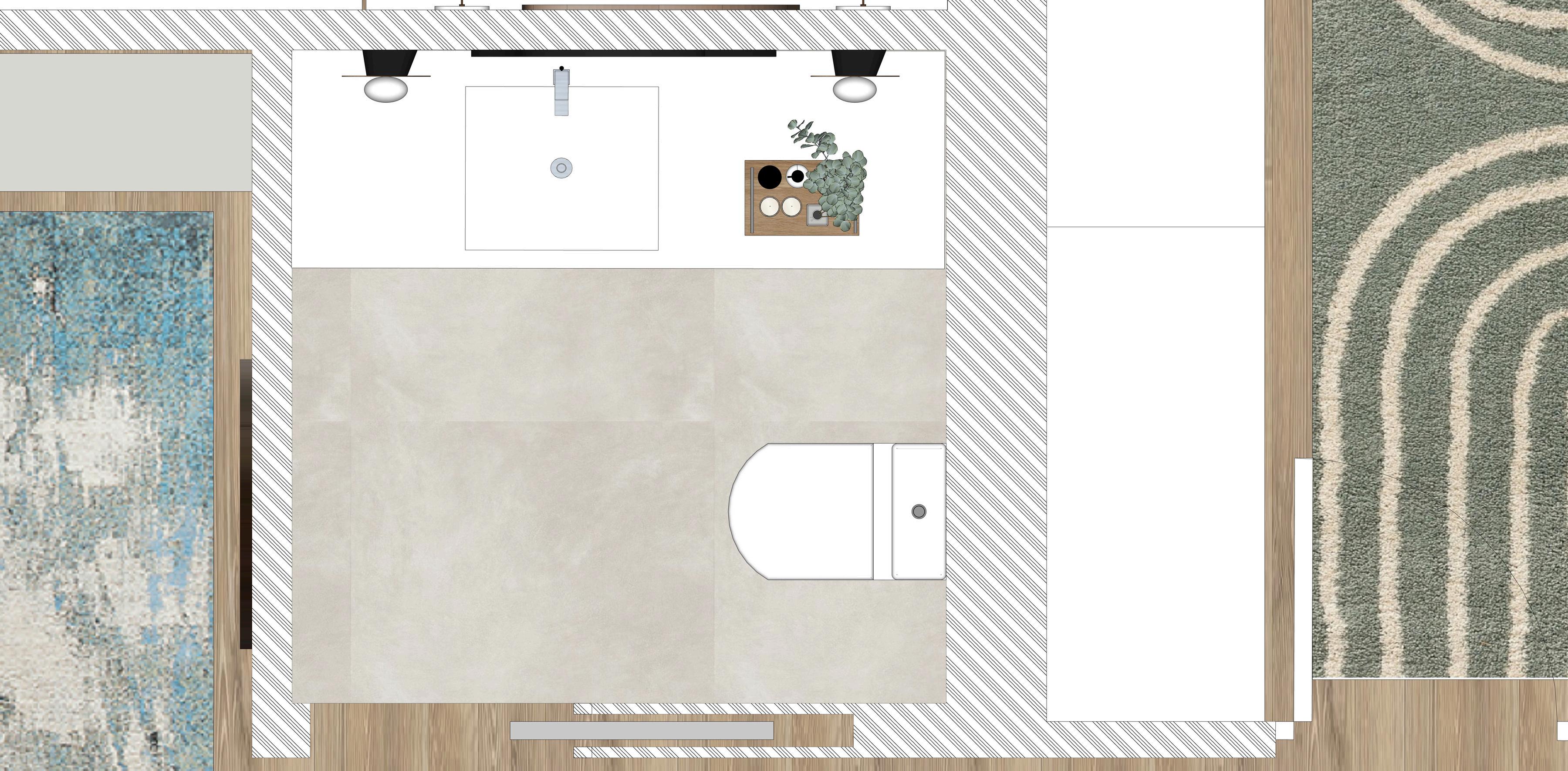 Aseo en zona de día, solo inodoro y lavabo. No más de 3 m2.