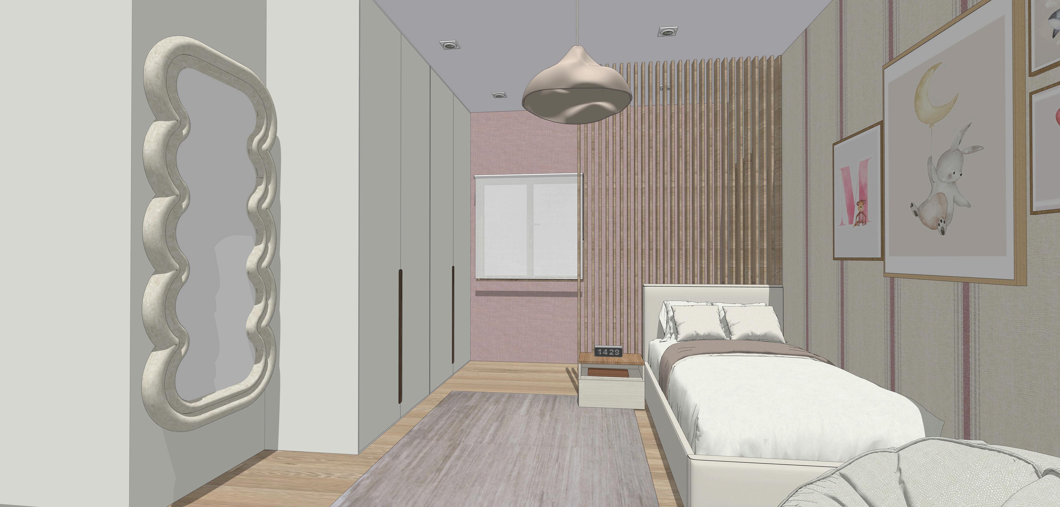 Niña: con cama normal (no nido) de 1900x900 y mucho almacenamiento Escritorio, espejo de cuerpo entero Colores pastel y blanco Le gusta el malva y el rosa.