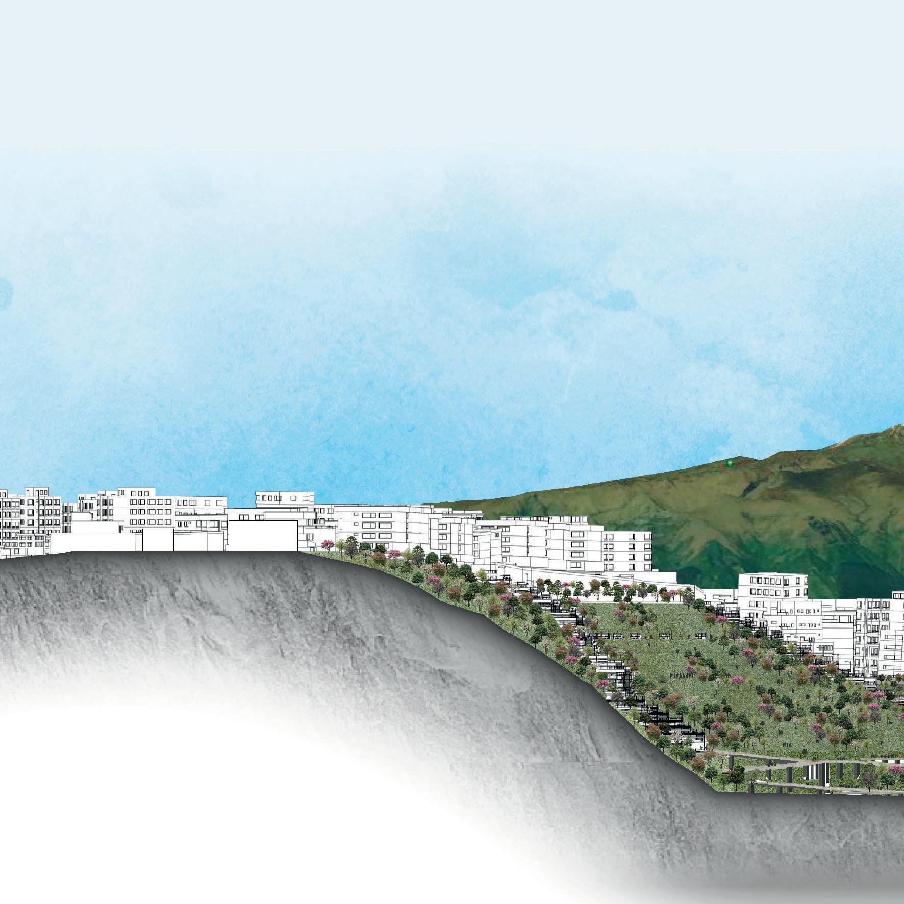 Por medio de la vegetación se impulsa el gran pulmón verde que existe en la quebrada y mediante puntos de conexión entre ambos lados, se busca crear una zona más legible, permeable y diversa. De la misma manera, por medio de nuevas vías peatonales y vehiculares creamos conexiones a zonas menos transitadas, y diseñamos nuevos parques y plazas para aportar mayor vitalidad y confort al sitio.