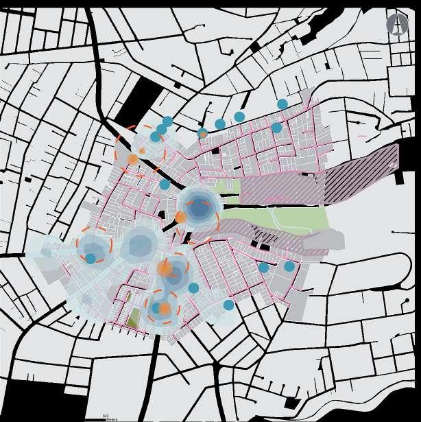 Se crean mejoras que cubran las carencias de actividades generando espacios públicos y parques que incentiven a los usuarios a permanecer y hacer uso de los mismos; a su vez, se plantea darle un orden en cuanto a vías, manzanas y morfología (uso de suelos, ocupación, altura y normativa), siempre conservando y tomando en cuenta al peatón.