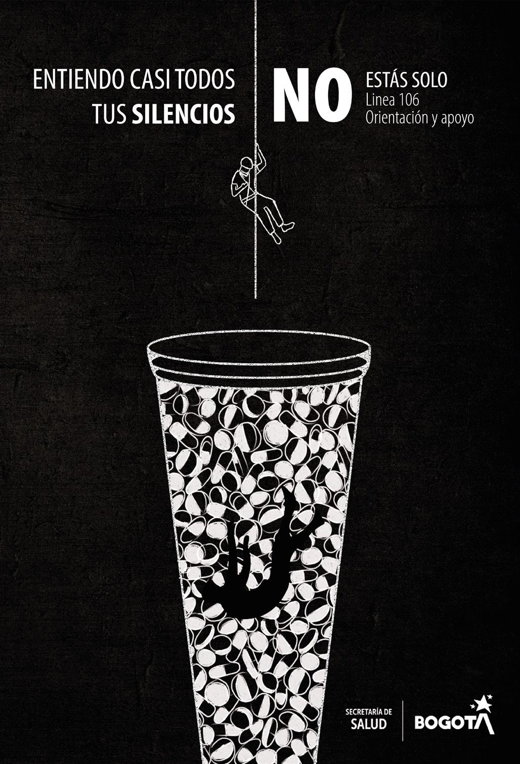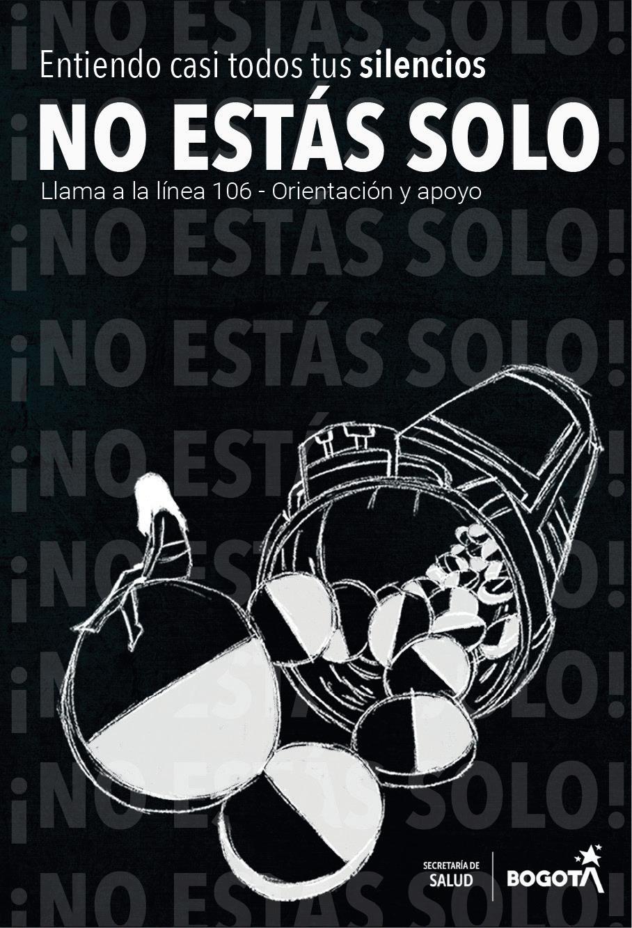 Título: Entiendo casi todos tus silencios. Texto de anclaje: ¡No estas sólo! Llama a la línea 106, Orientación y apoyo. Marca: Secretaría de Salud, Bogotá.