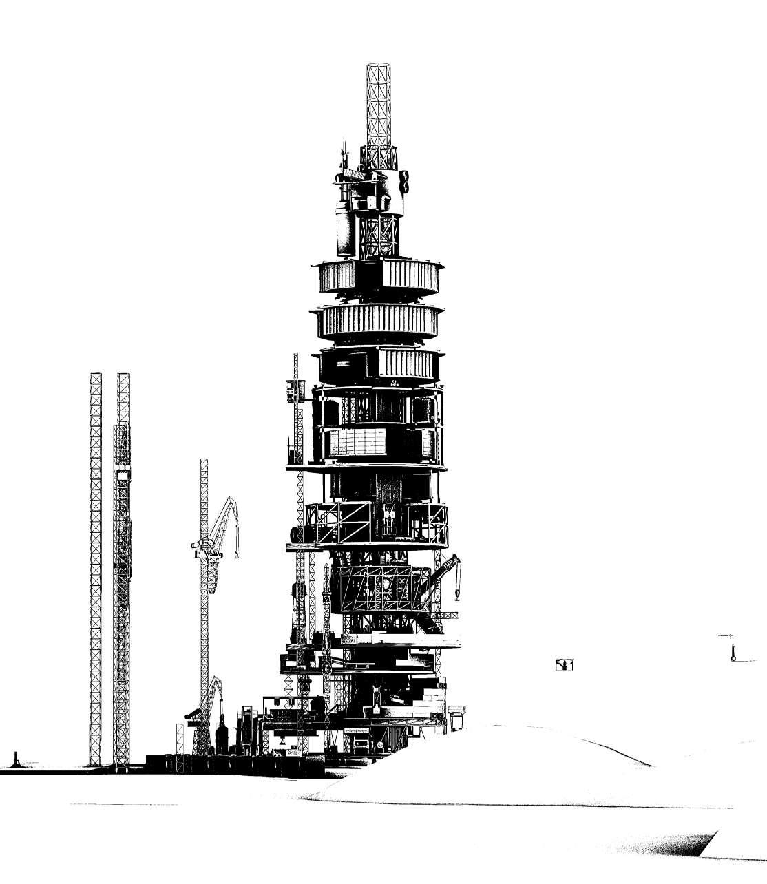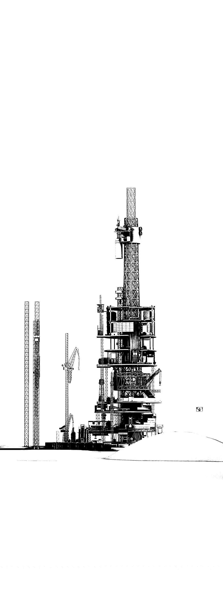 Las torres comienzan a tomar forma, cada vez más altas El área en el que están comienza a transformarse Se vuelve más eficiente Los deshechos se clasifican y se convierten en materiales útiles El aparente desastre inicial se ha convertido en organización y limpieza