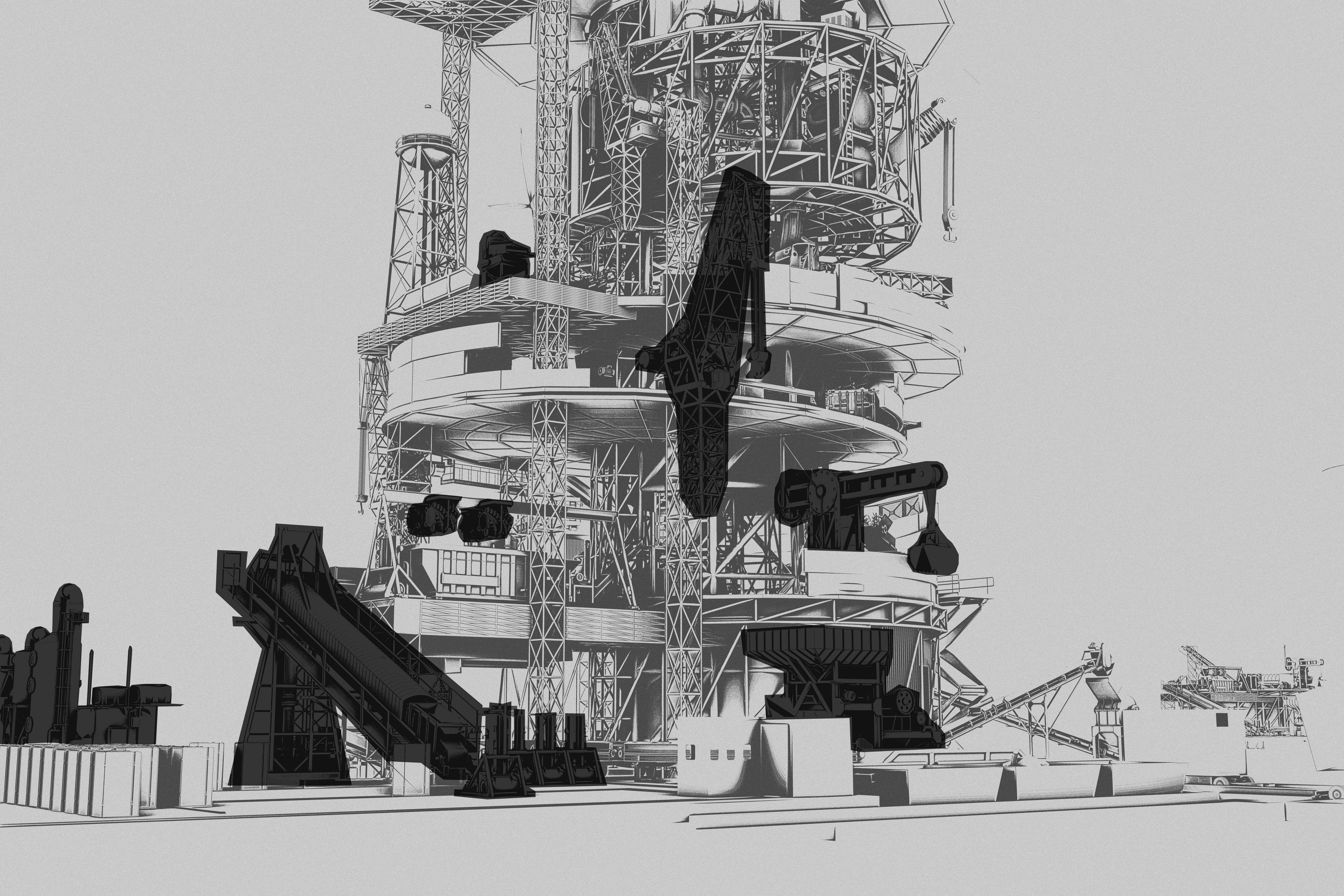 Con el paso de los días se empiezan a acumular máquinas, residuos, y algo comienza a crecer hacia arriba