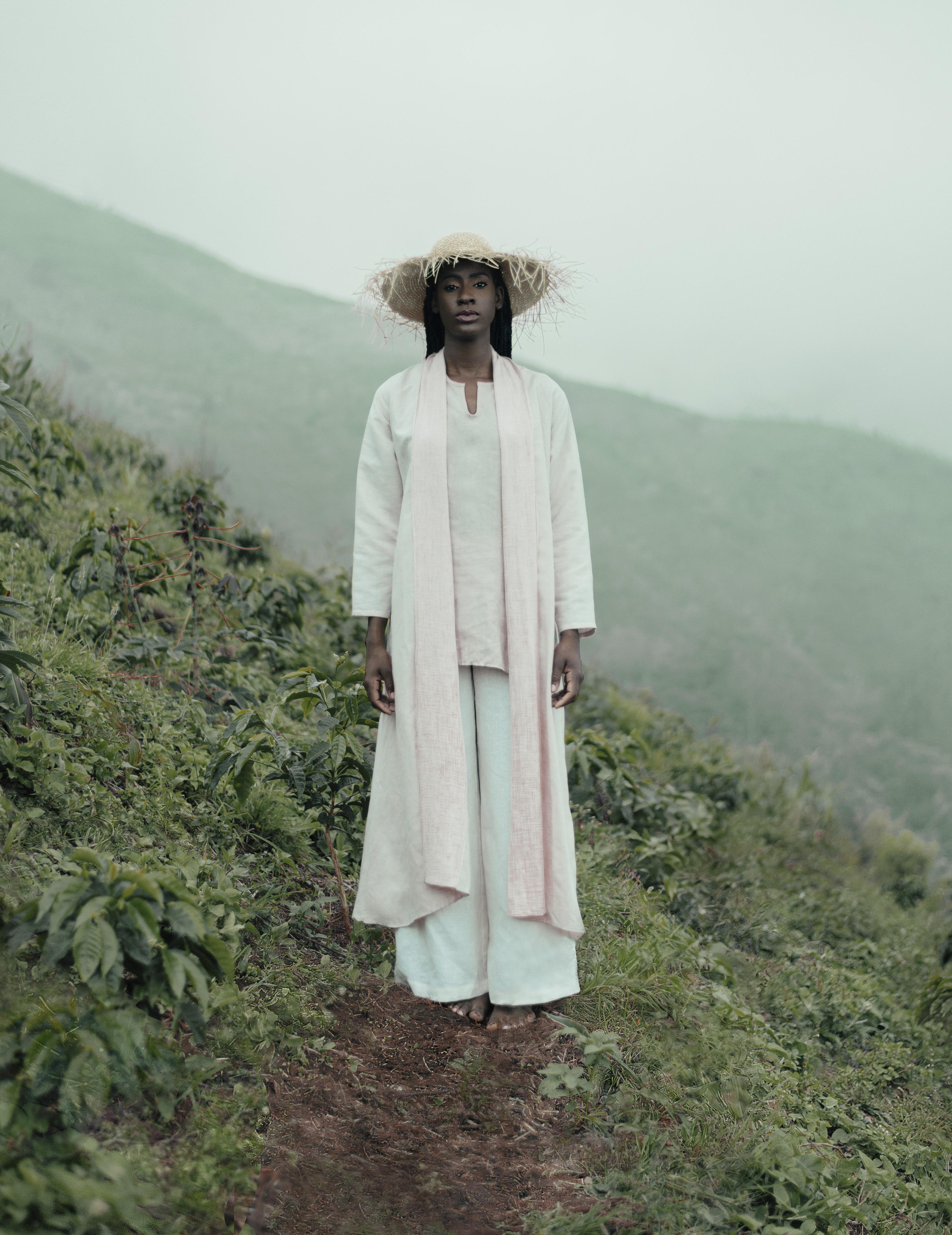 (abajo) (anterior) Ella usa un set AMODOMIO y aretes PAULA MENDOZA. Ella usa una blusa y pantalón MARMOLEJO.