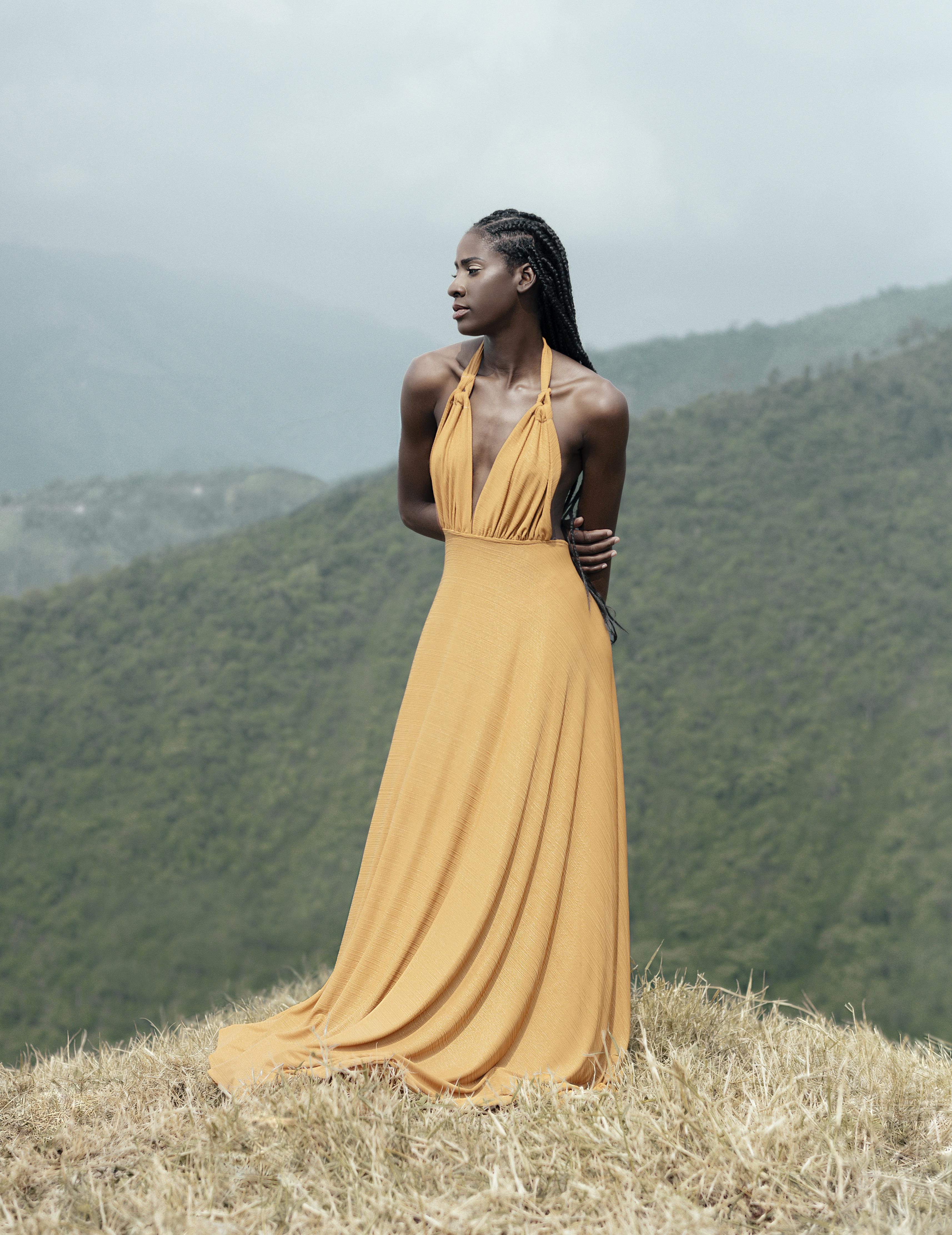 04 (abajo) (anterior) Adelis usa un vestido de AMODOMIO. Ella usa un set de CLEIBER.