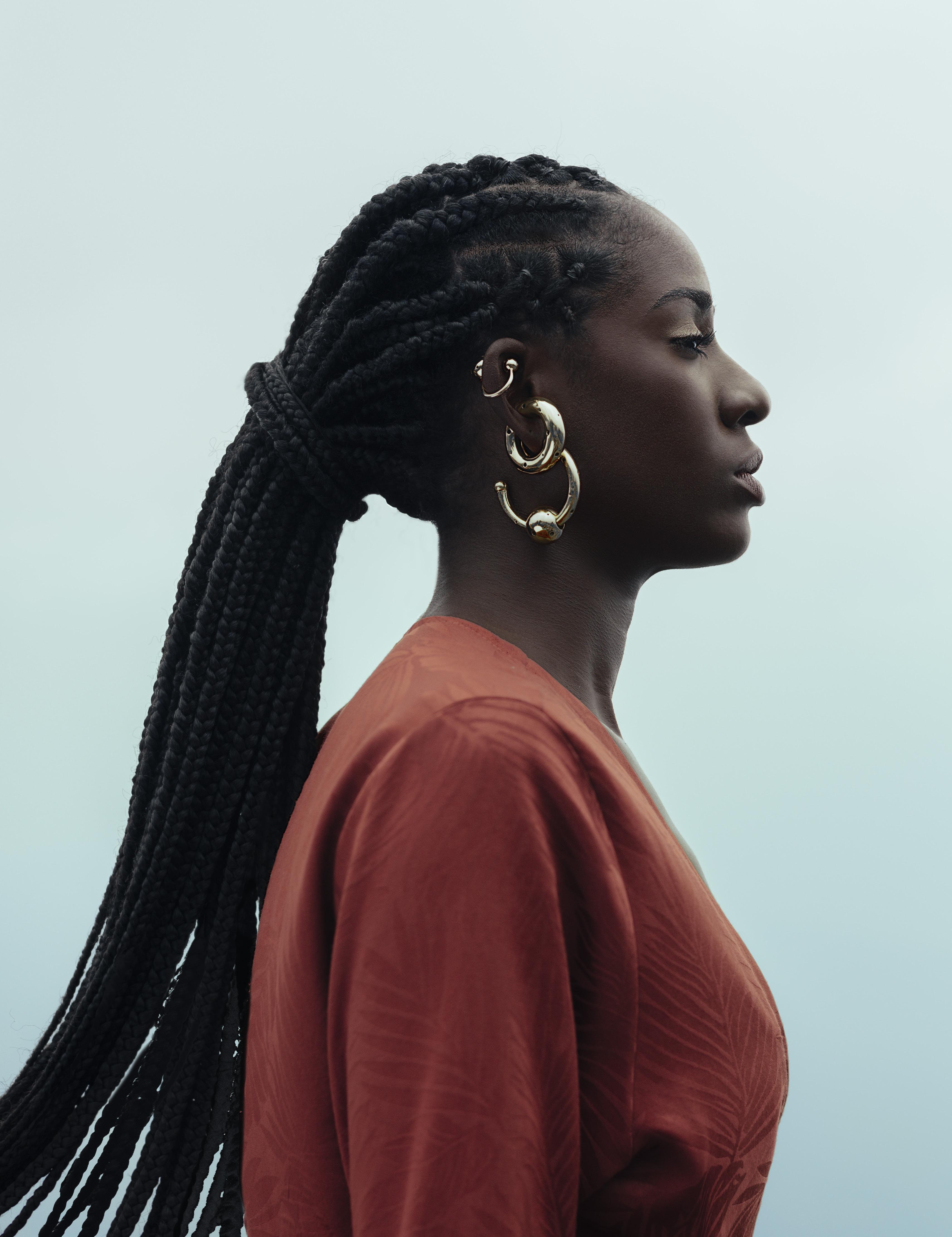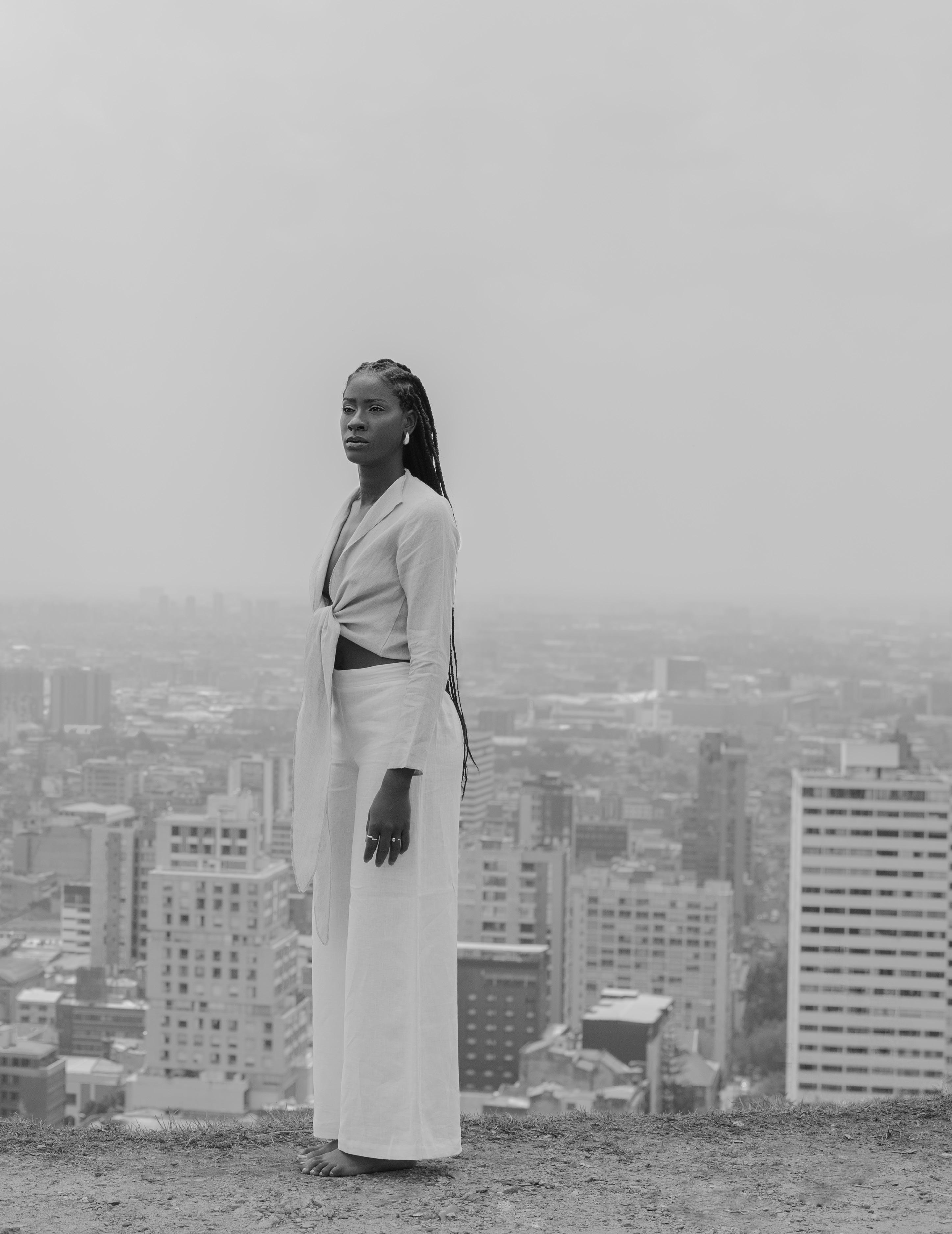 Ella usa una blusa de MARMOLEJO, pantalón de CLEIBER, aretes PAULA MENDOZA y anillos PAULA MENDOZA.