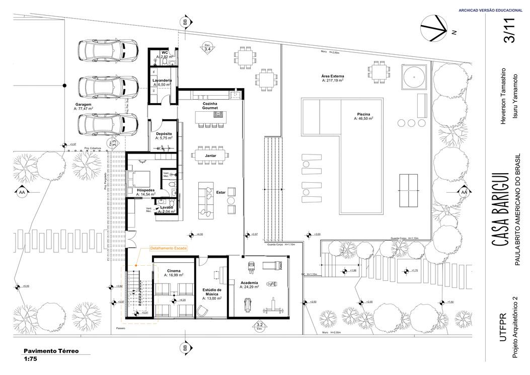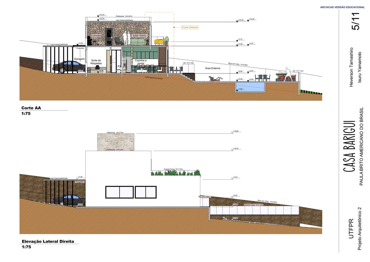A Casa Barigui foi um projeto residencial desenvolvido de forma individual na Disciplina de Projeto Arquitetônico 2 A proposta era de abrigar uma família de um casal com seus 2 filhos adolescentes O terreno conta com uma vista privilegiada para um dos maiores parques da cidade de Curitiba e possui 1800m²