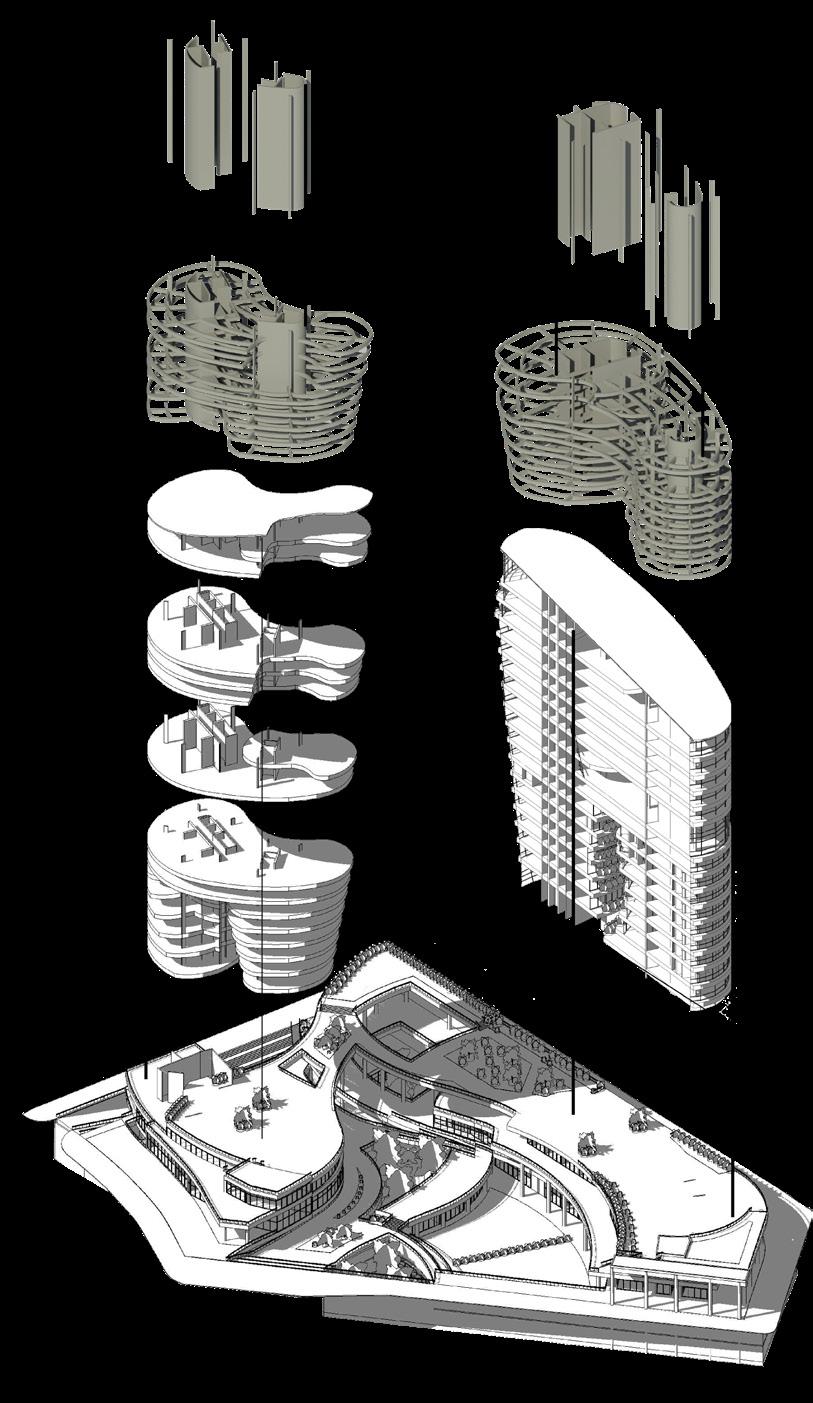 Dándole respuesta a la necesidad de espacios residenciales colindantes a la Universidad Nacional de Colombia y así mismos espacios de integración, se propone un complejo residencial con crecimiento vertical que en sus primeros pisos se desarrollen actividades comerciales, administrativas y de reunión. Su diseño se dispone con líneas orgánicas que a partir de una piel de vidrio e intersecciones de vacíos permite regular temas de confort climático.