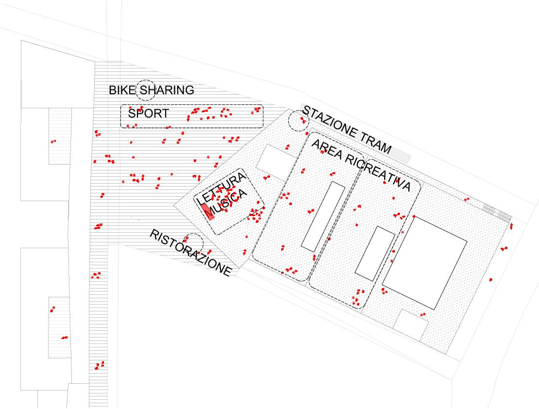 Con el fin de afectar positivamente el carácter del espacio público y reconstruir la identidad en Torino, se define el papel urbanístico a partir de comprender aspectos generales del vacío y el lleno para concluir con una propuesta que pretende plantear la transformación del área “Spina 4” en un nuevo centro de atracción y así mismo convertirlo en un gran “punto verde” capaz de sumergirse en una realidad serenidad dentro de la caótica ciudad. Para el diseño del proyecto natural, se define a partir de la sobreposición de las direcciones del viento mas recurrentes en el área, como también los sonidos mas elevados y repetitivos. Con el fin de integrar proyectos futuros y línea del tranvía, se propone una estación que permite la recogida y así ambientes residenciales de integración y reunión.