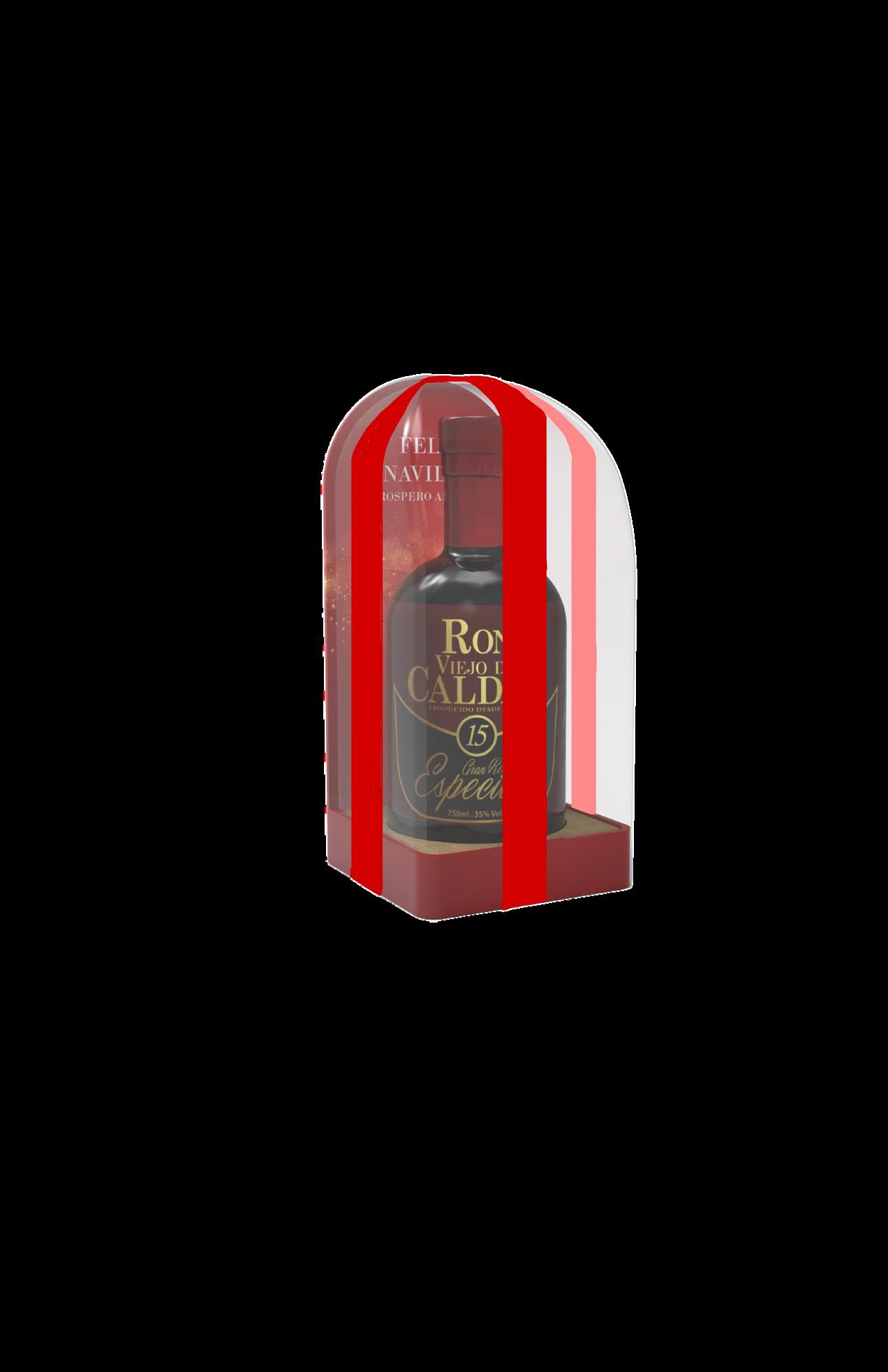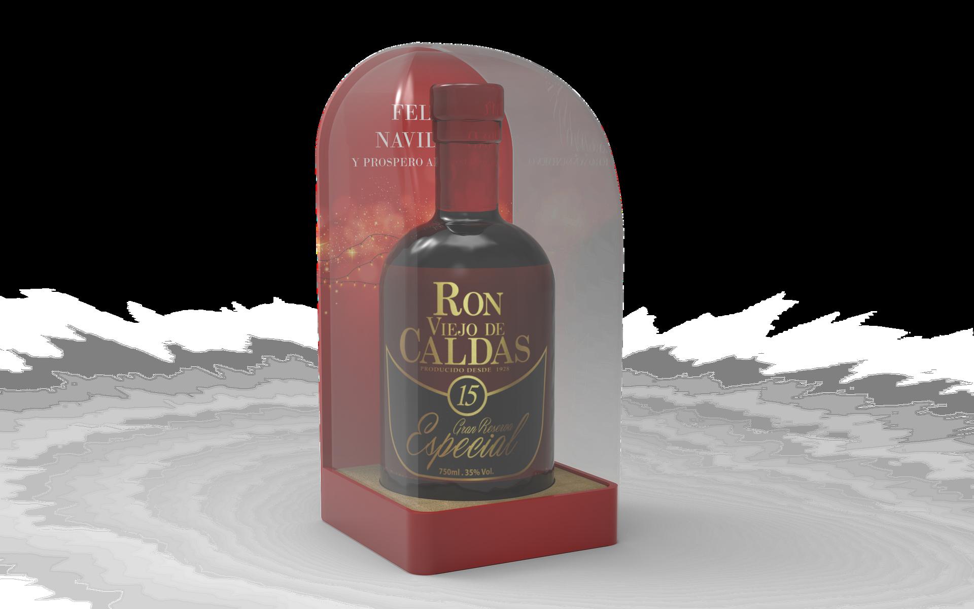 Propuesta de empaque en envase metálico para botella de Ron de Caldas 15 años para temporada de navidad dirigido a un público mayores de 40 años.