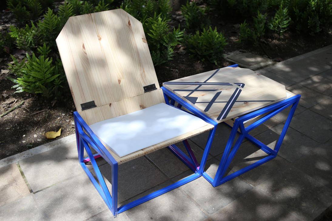 KA-LAY es una banca multiusos para dos personas la cual se divide para convertirse en dos sillas separadas que se pueden ubicar en diferentes espacios, ademas, se le puede bajar el espaldar para que que sea una mesa o apoya pies.