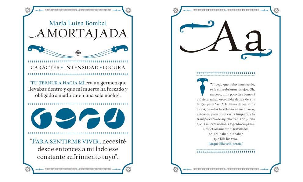 Tipografía para textos que lleva como nombre Amortajada. Inspirada, pensada y sentida desde el origen por la obra de la escritora chilena María Luisa Bombal.