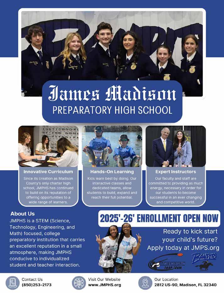 It’s time to shine a light on the very BEST our community has to offer! From your favorite local businesses to inspiring leaders and community organizations, we want to hear from YOU. Nominations are open now through Friday, Sept. 19. Nominees must live, work or do business in Hamilton, Lafayette or Suwannee Counties. Categories include: Small Business of the Year, Large Business of the Year, Best Business in Customer Service, Best Individual in Customer Service, Non-Profit of the Year, New Business of the Year, Young Professional of the Year, Outstanding Volunteer of the Year and Hometown Hero of the Year. Visit riverbendnews.org/2025-best-ofriverbend-community-choice/ to submit your nominations today!