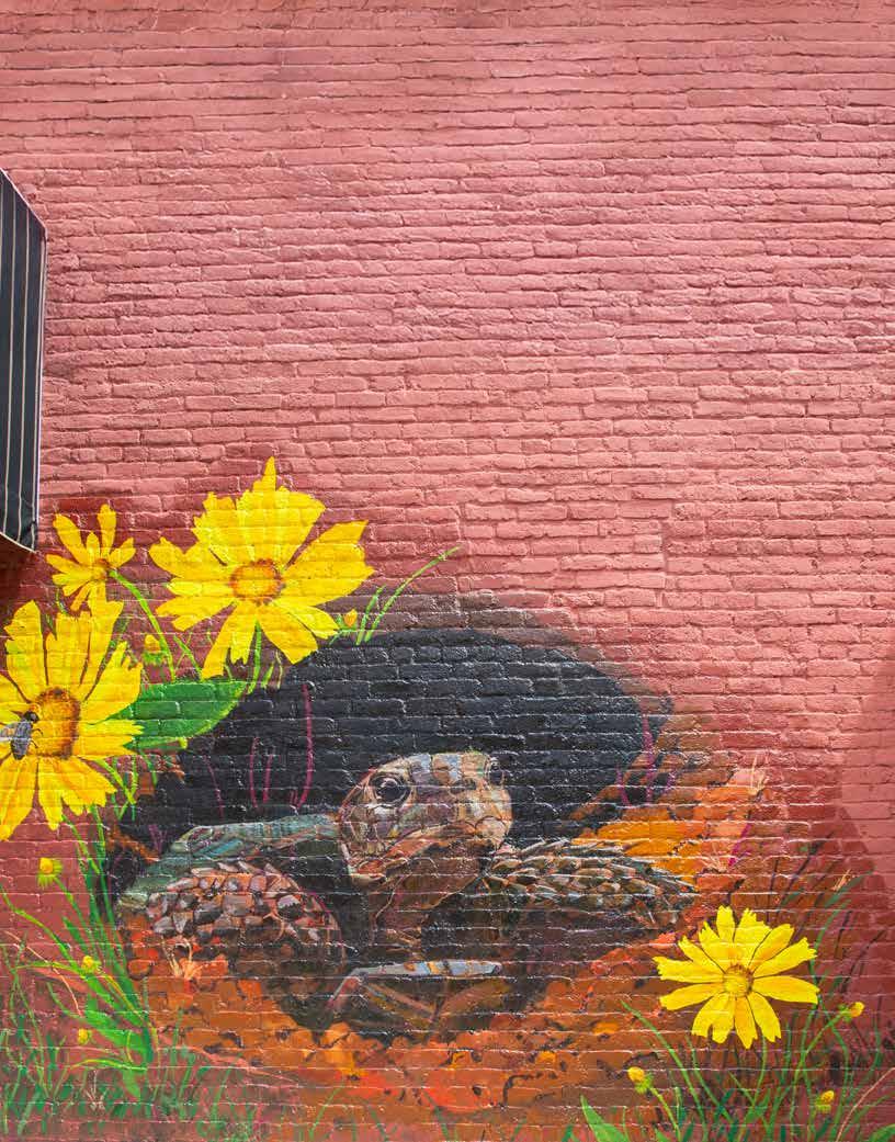 How fitting for this public art to take the form of a mural! Its connected scenes of distinctive local flora and fauna showcase the county’s critical role in an 18-million-acre network of connected lands and water that support wildlife and people – the Florida Wildlife Corridor –which stretches from the Everglades into the Panhandle.