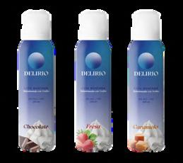 Packaging del pot de nata muntada DELIRIO, sabor xocolata infusionada amb Vodka Conté un 10% d'alcohol i és +18