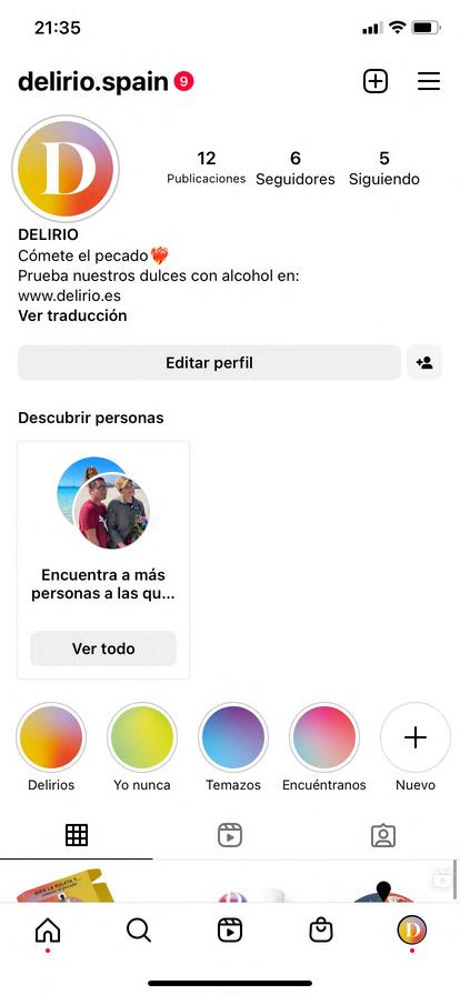 Perfil d'Instagram de Delirio (@delirio.spain), canal estrella per contactar més àmpliament amb el nostre target.