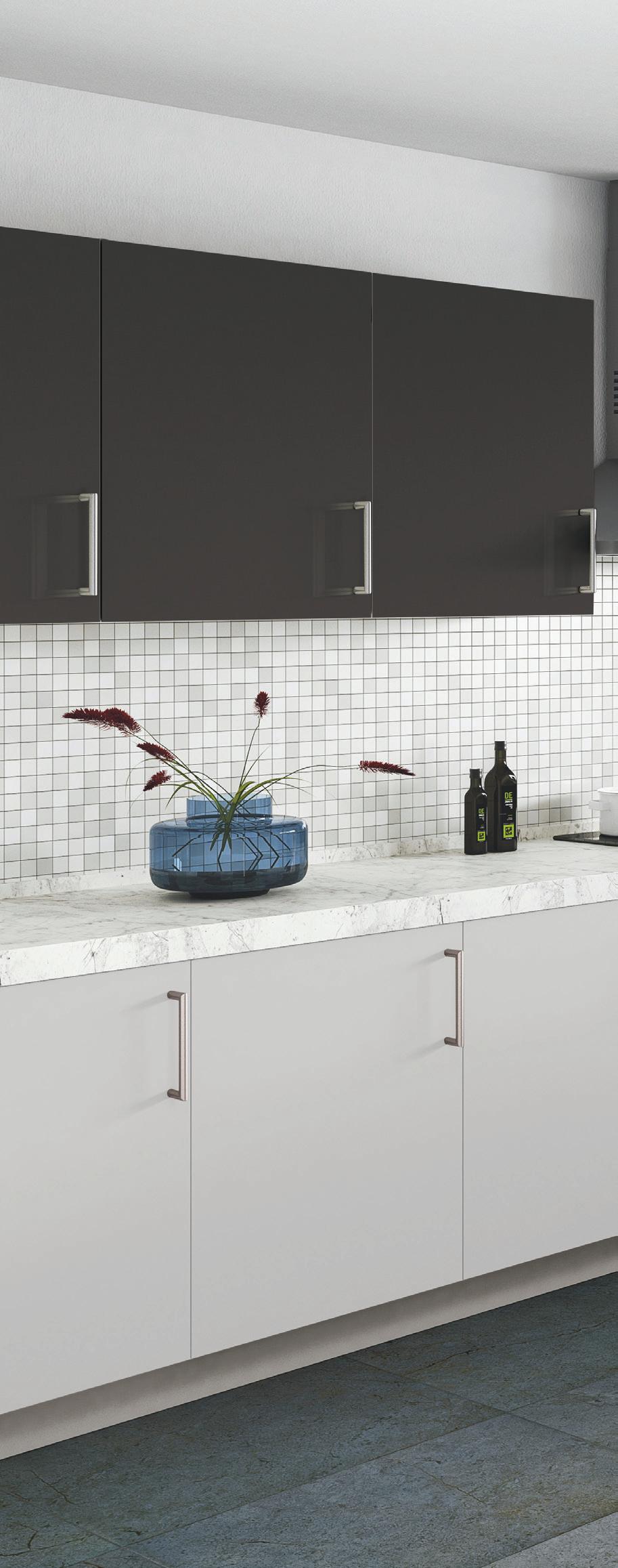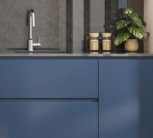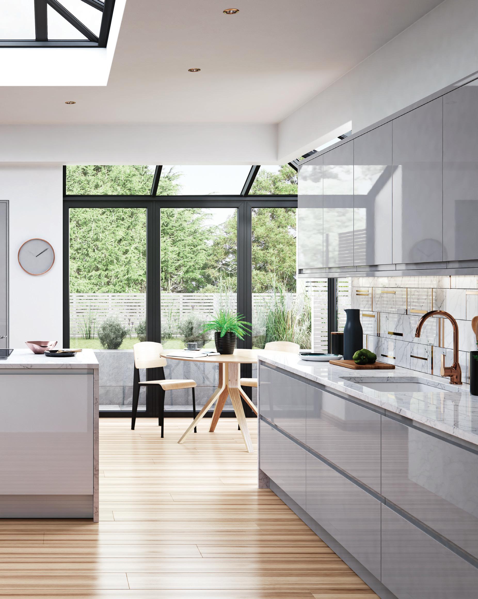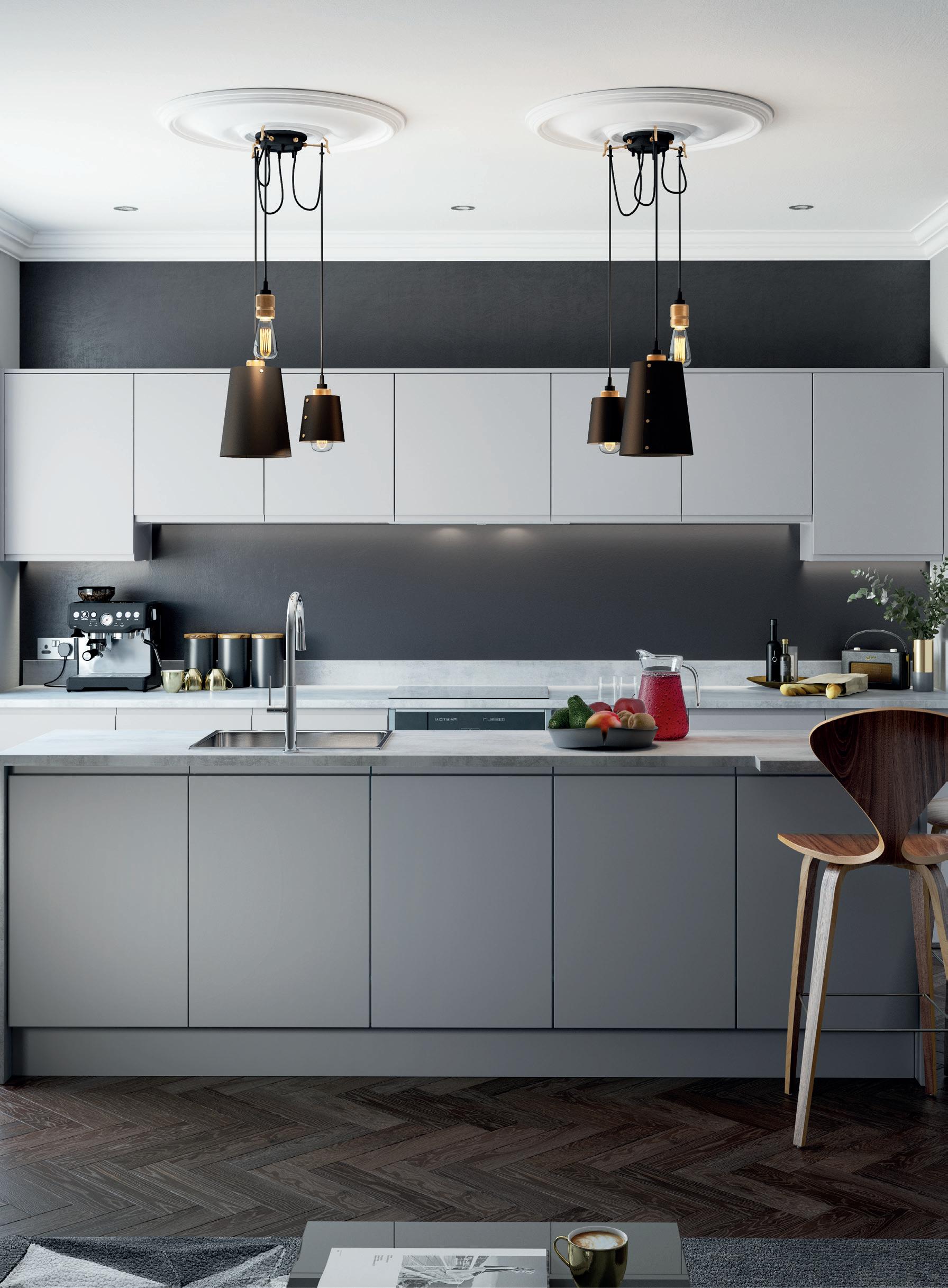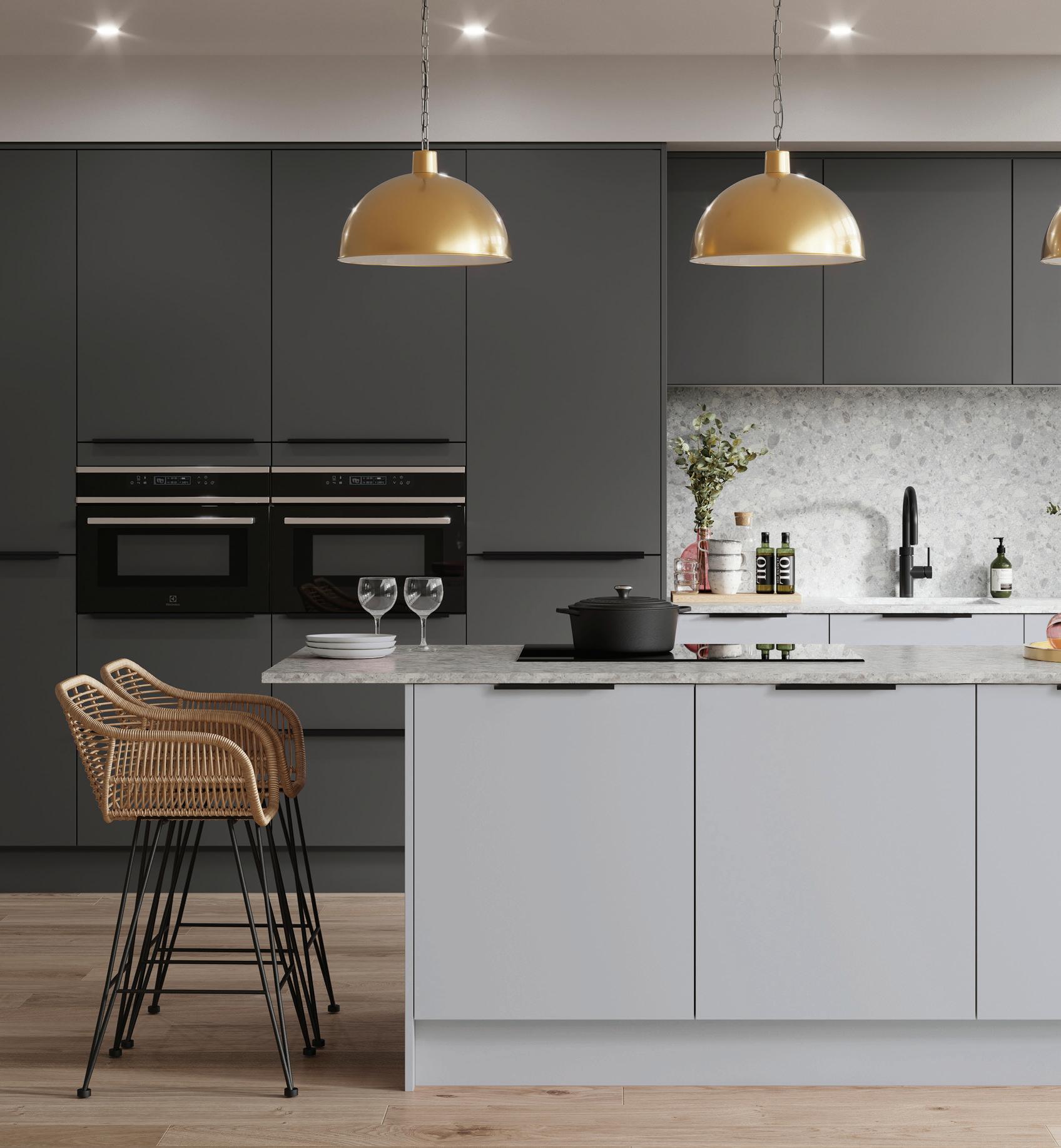 Horizon combines an understated slab door with a statement edge-pull handle for the perfect sleek kitchen effect. Available in matt and gloss finishes and offering two different handles.