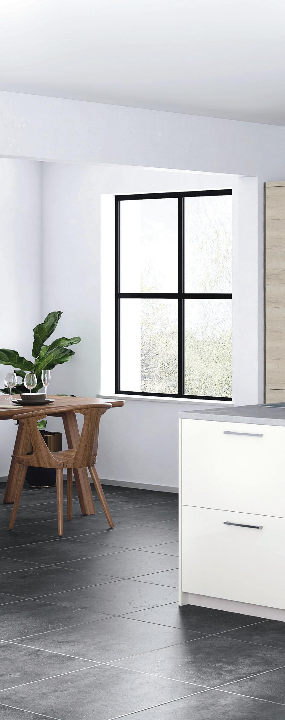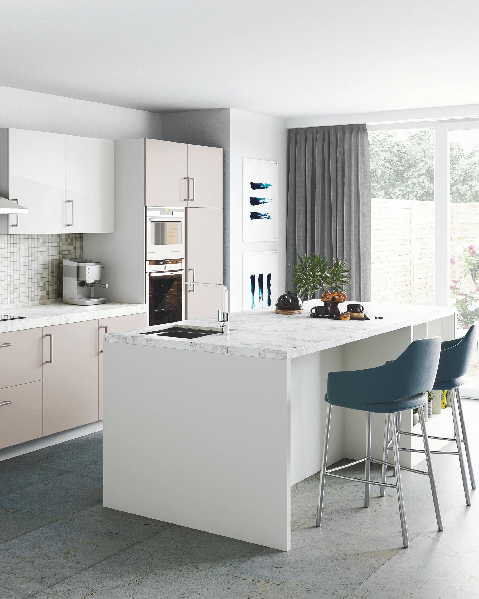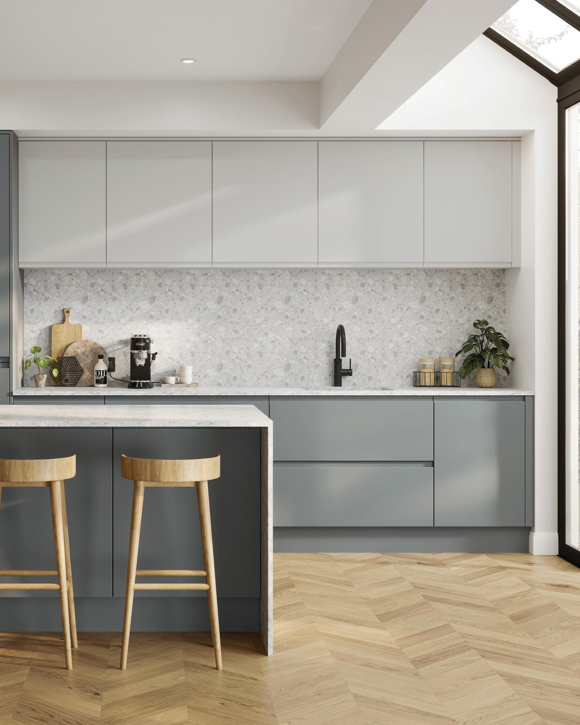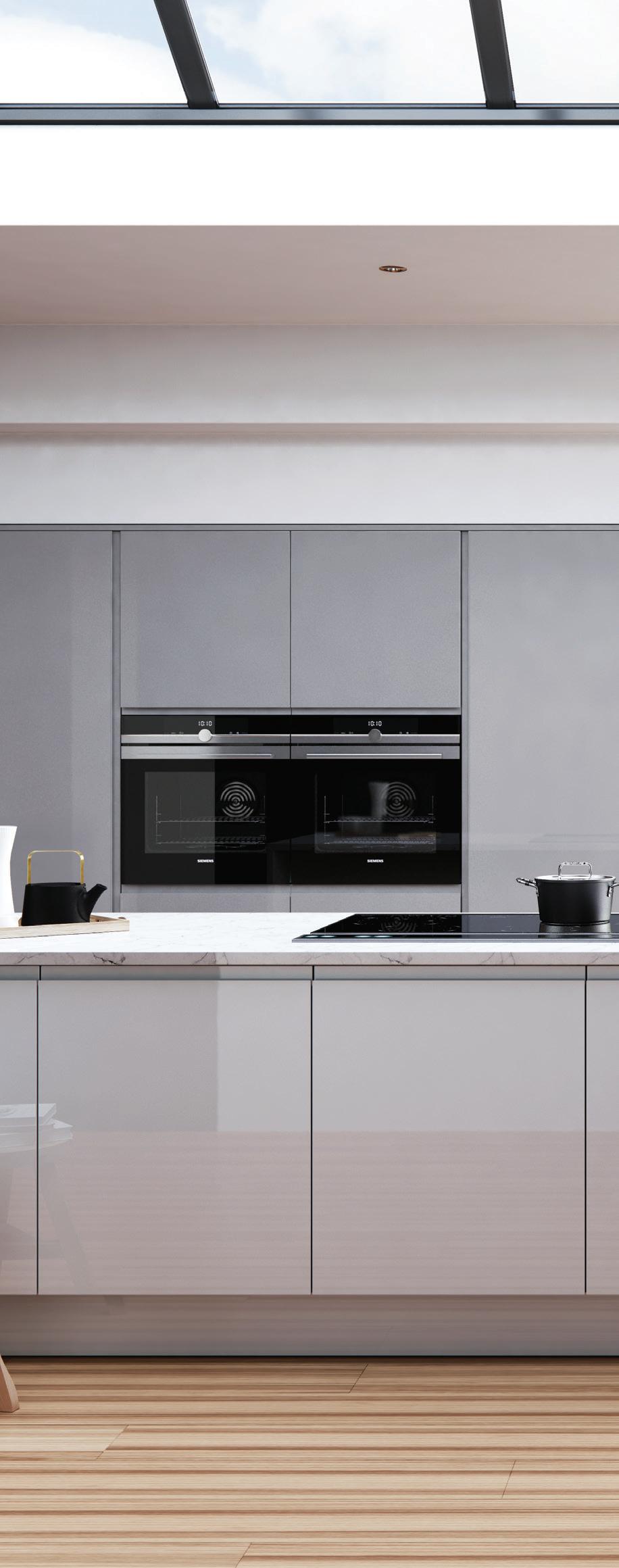 Horizon combines an understated slab door with a statement edge-pull handle for the perfect sleek kitchen effect. Available in matt and gloss finishes and offering two different handles.