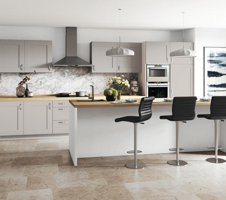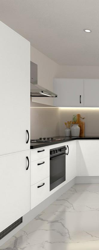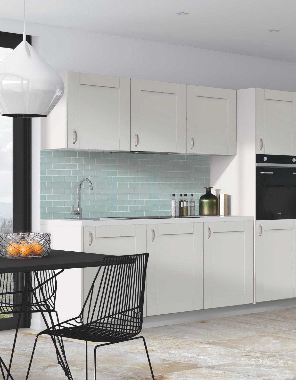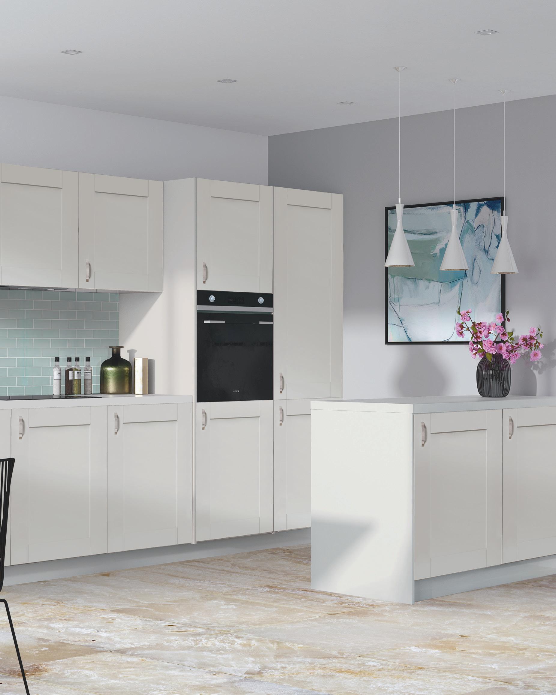 M20 ‘Shaker’ style with five-piece matt PP foil-wrapped MDF doors.