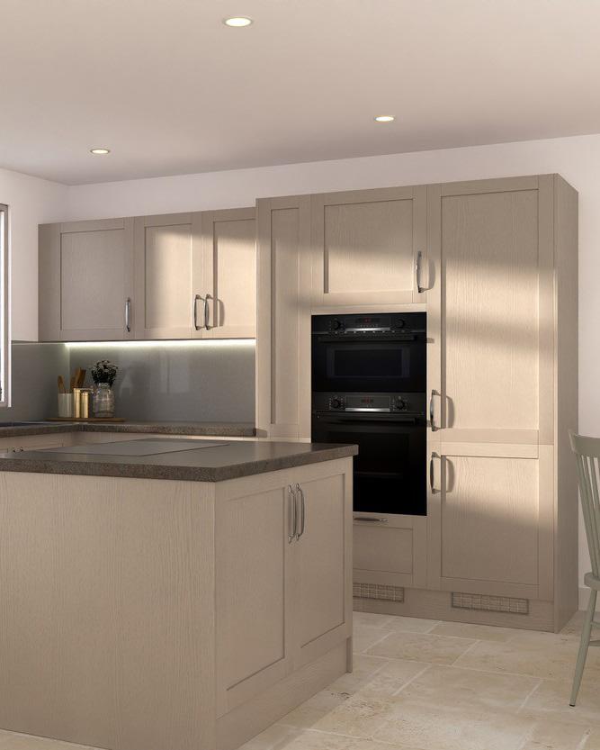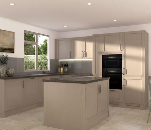 I01 ‘Shaker’ style with five-piece, 18mm foil-wrapped MFC doors. Shaker Thickness 60mm.