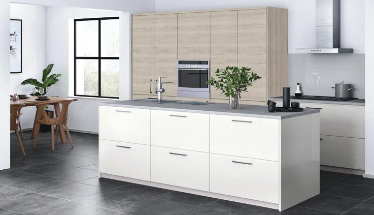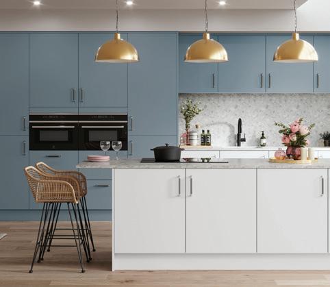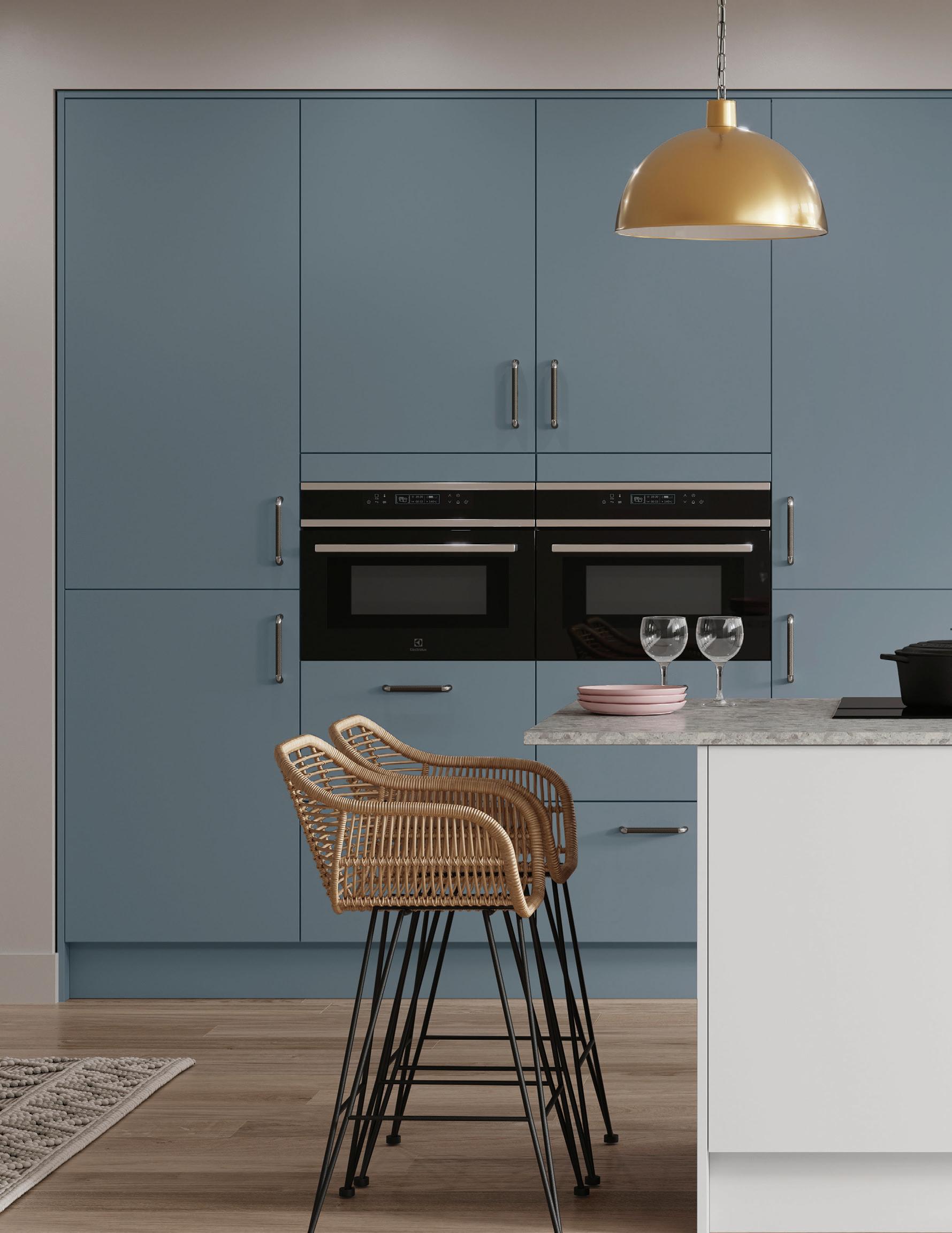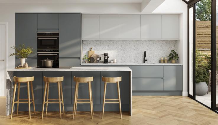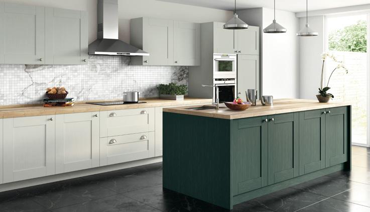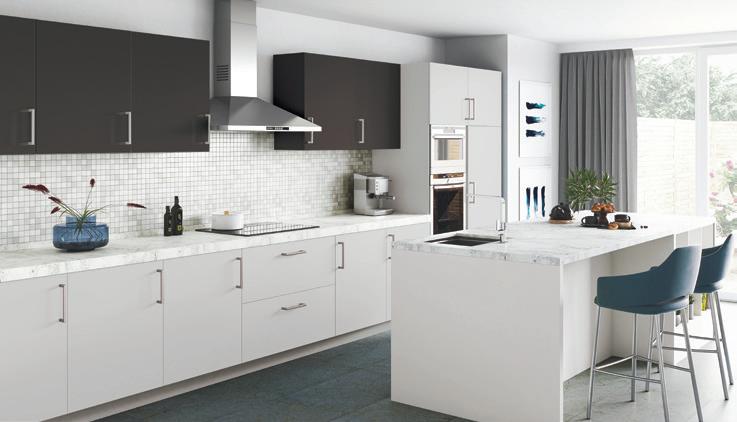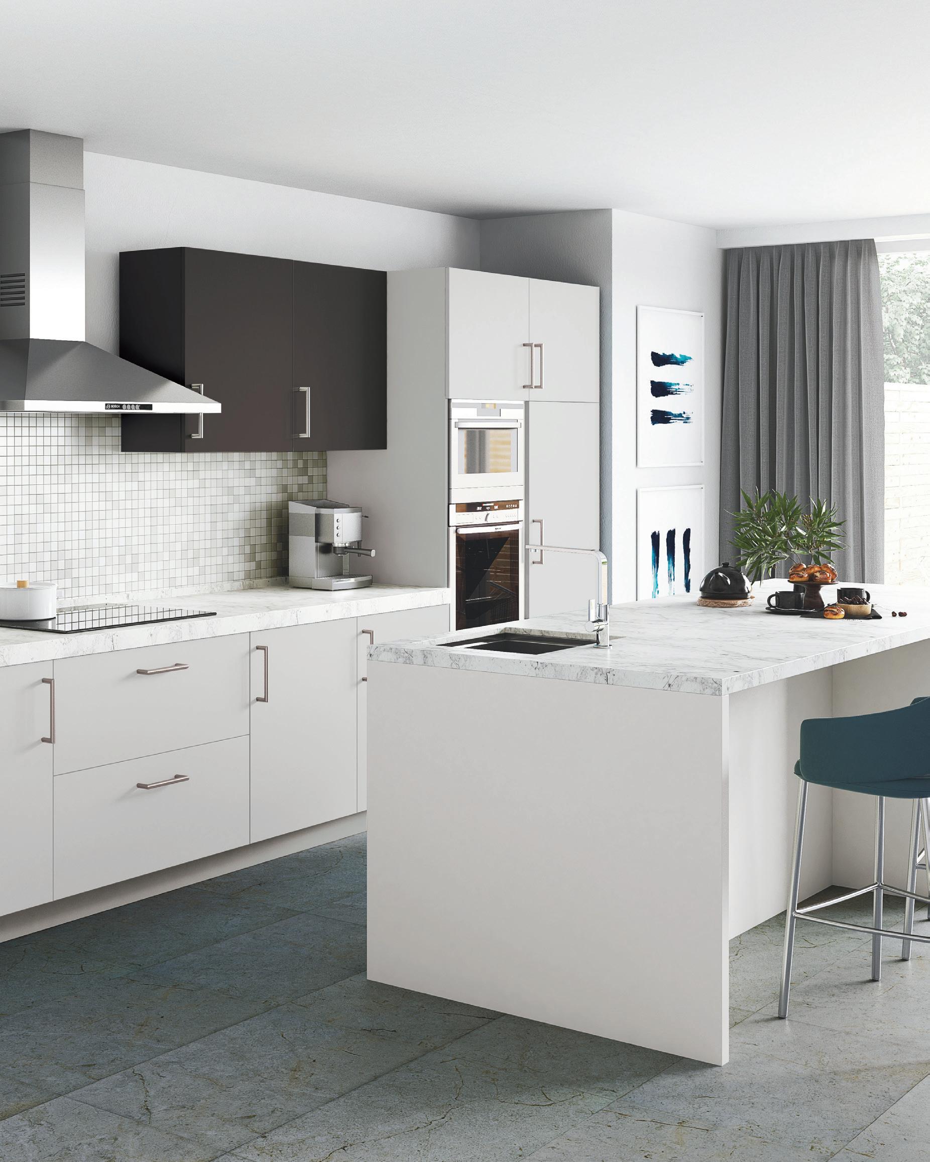 Franklin is a contemporary range, offering a modern colour palette with crisp, flat panel doors in a selection of matt finishes or woodgrain designs.