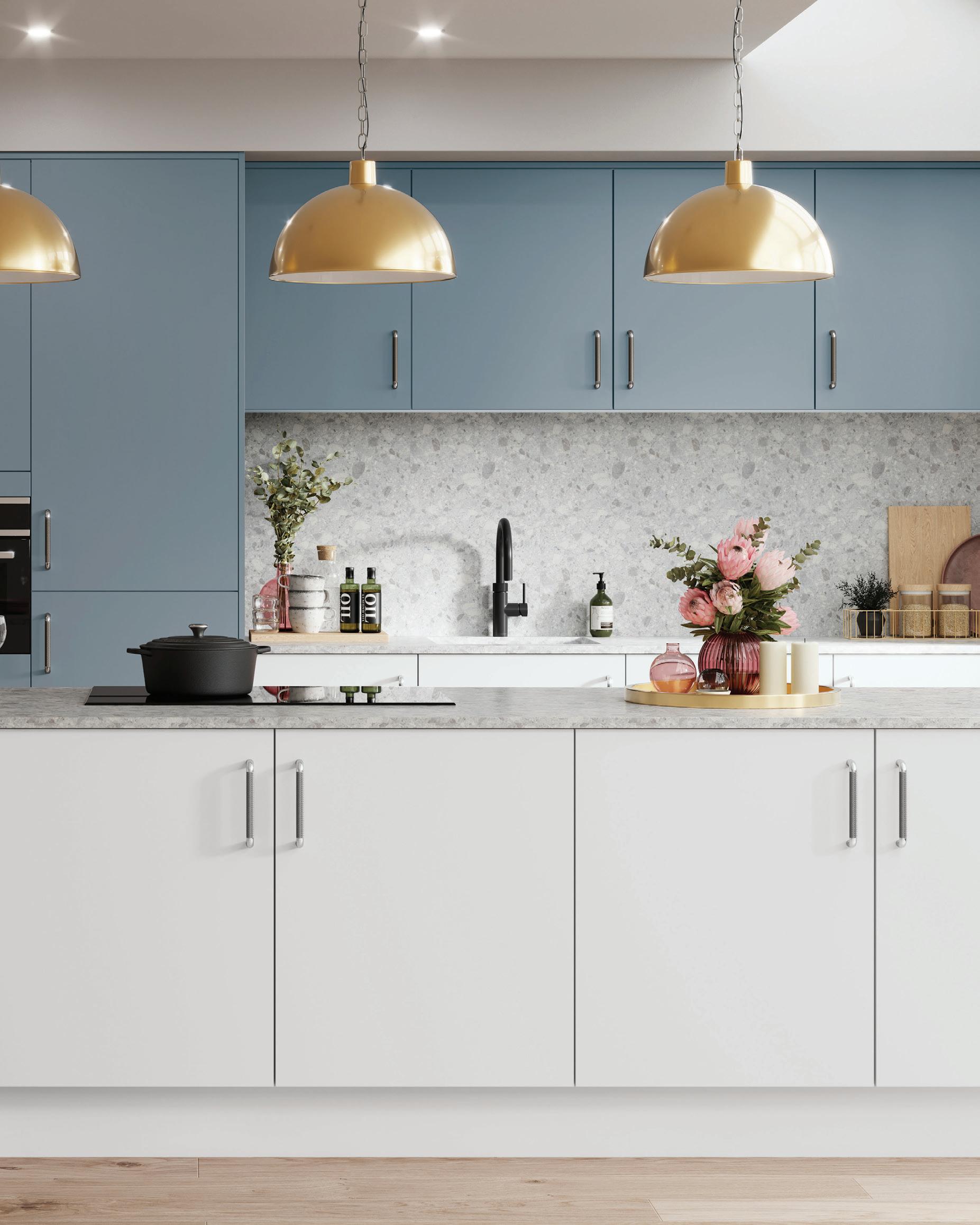 Blue comes in a vast array of shades to work in all shape and size of kitchen. It works as a splash of accent colour, a stylish cupboard door finish or a modern theme for the entire room.