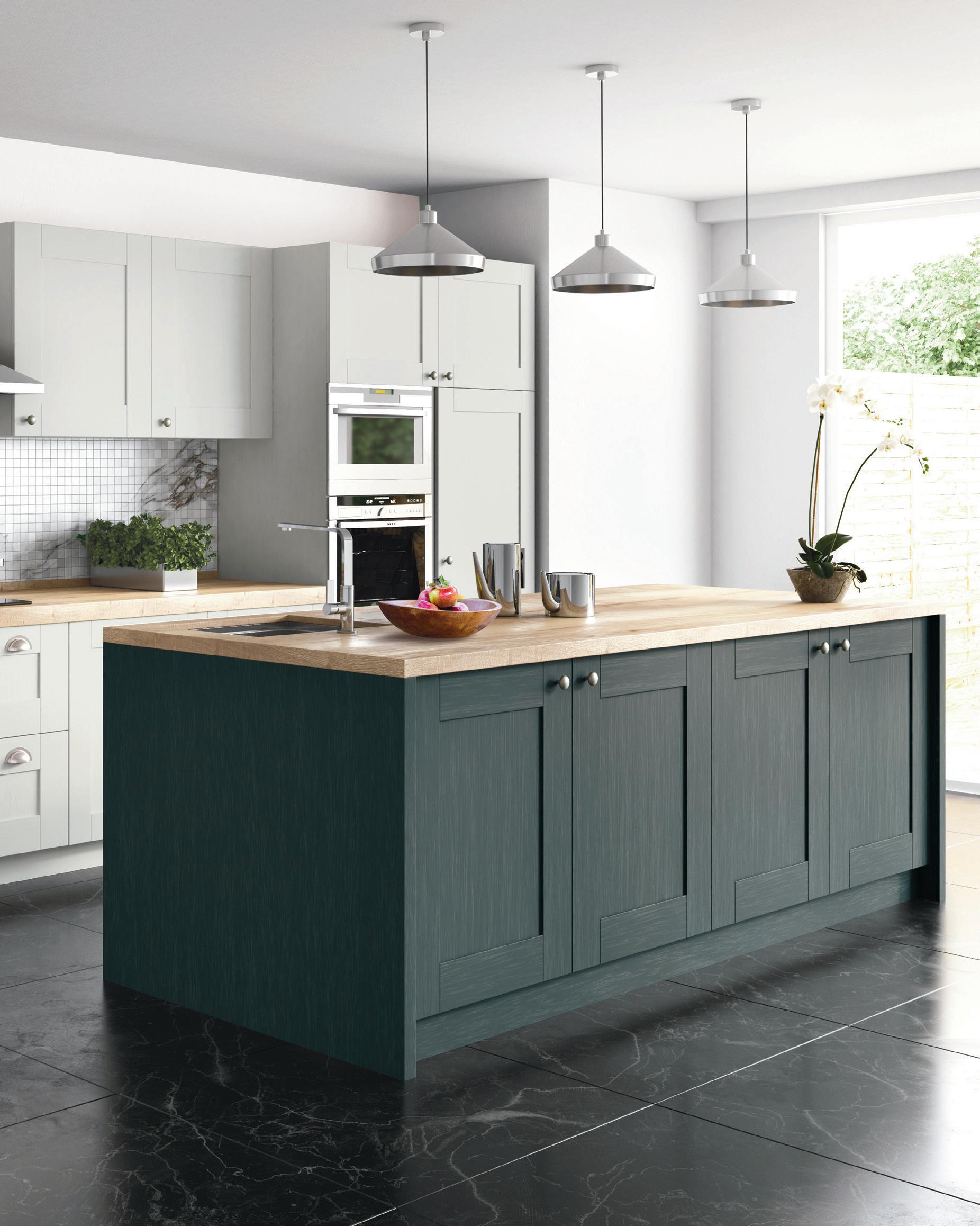 Maine range introduces a five-piece, wood-grained door. Available in a range of warm, subtle shades and rich, striking colours. Maine offers a sophisticated solution to a classic kitchen design.
