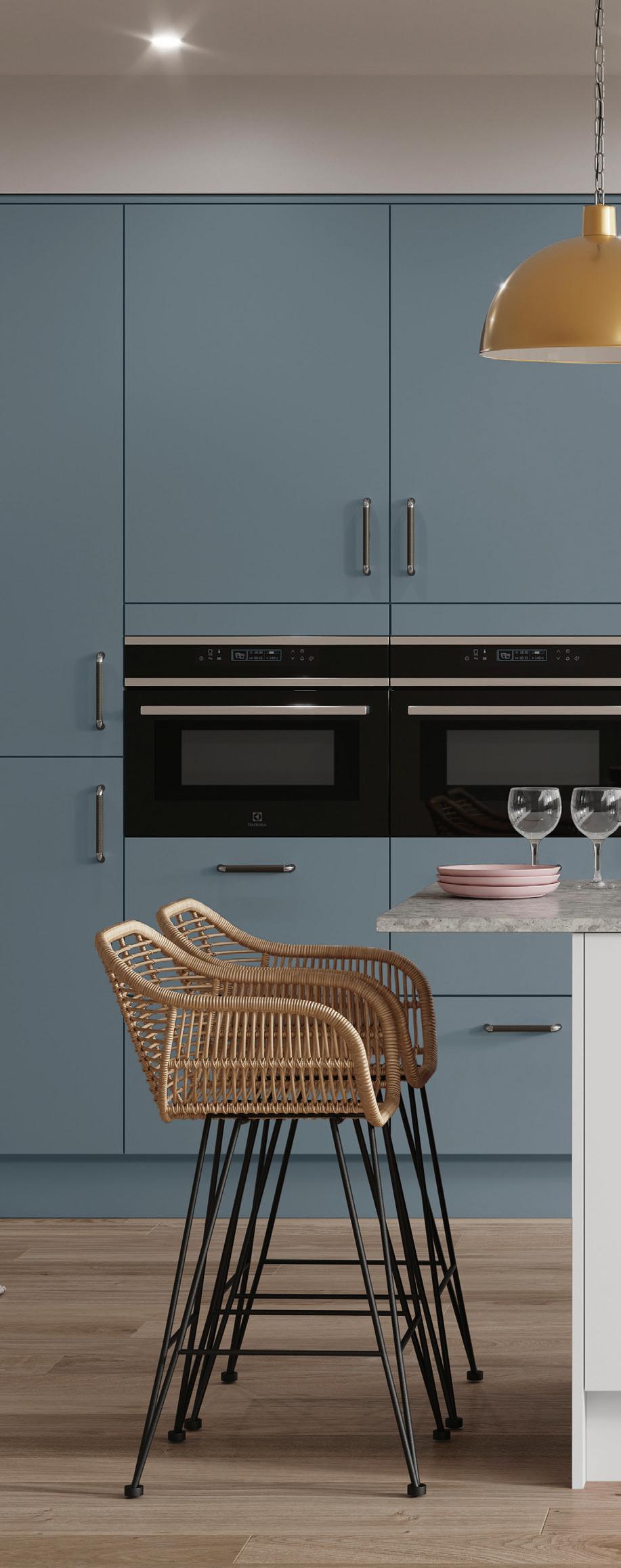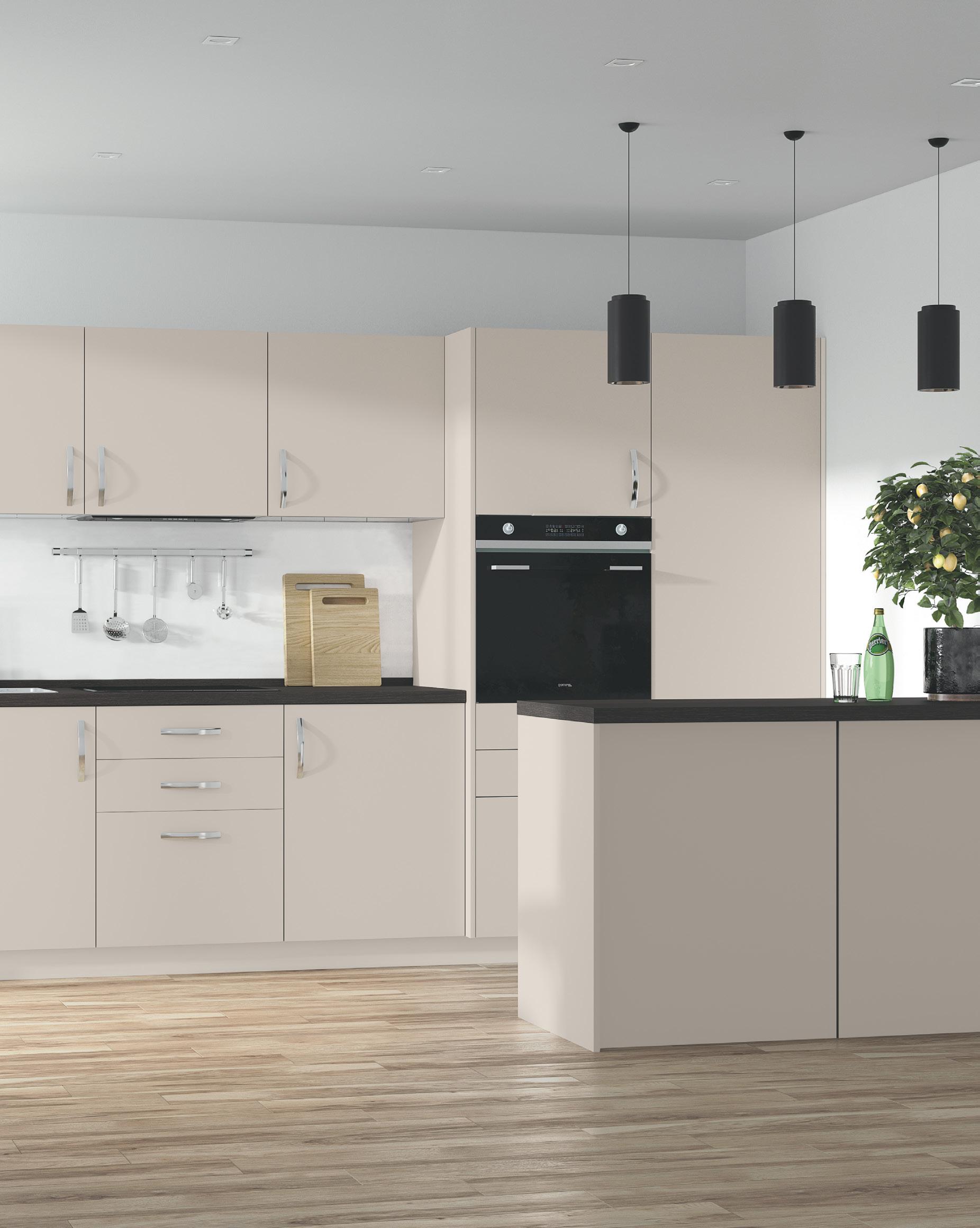Hamilton range offers a variety of options, from matt to gloss, from bold to soft tones in a range of colours. Pair with a statement handle for the perfect contemporary finish.