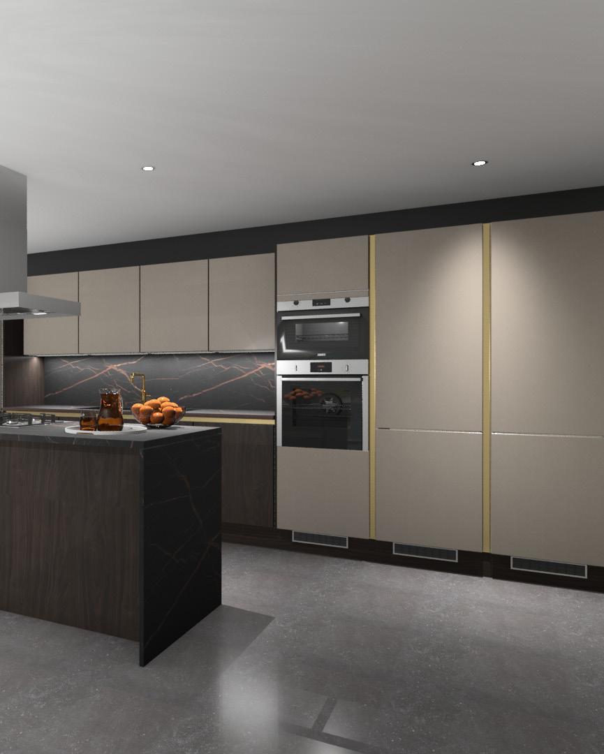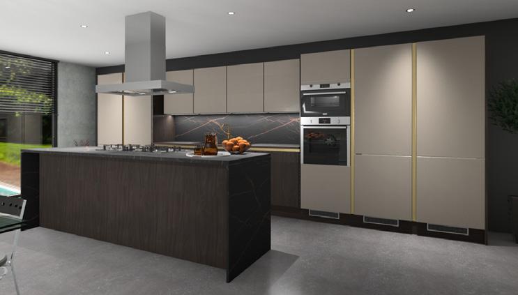 Linear kitchens bring a sleek, minimalist feel in the home. Use any of our slab or shaker doors with a gola rail to create clean, seamless lines in the kitchen.