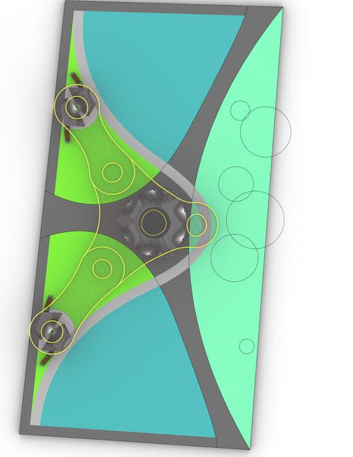Se destinan 360 m2 de área para recorridos dentro del parque, siendo el 24.4% del área total. Un círculo de 8 m de diámetro comprende el área central del parque, siendo 50.27 m2.
