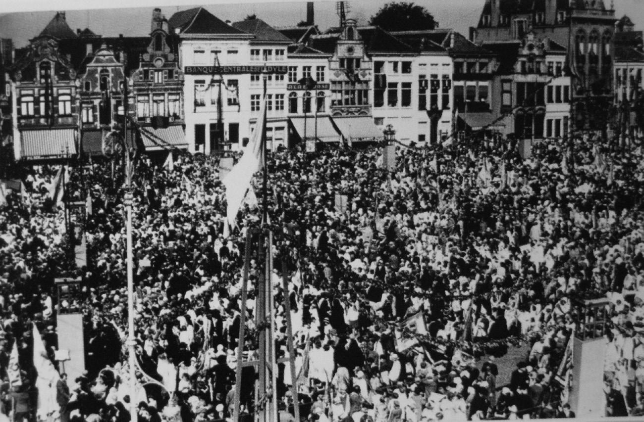 levensbelang. Sinds het enkelvoudig algemeen stemrecht moest de katholieke centrumkiezer overtuigd worden en dat kon enkel met gematigde standpunten, vertolkt door een brede volkspartij. Bij de katholieken, zoals bij de andere ideologische groepen van socialisten, liberalen, Vlaams-nationalisten en communisten, demonstreerden de propagandistische imposante turnfeesten gracieuze zel eheersing én fysieke kracht. Maar de pragmatici stonden in het defensief. Zij kregen van de militante katholieken het verwijt dat ze te gemakkelijk meegingen in de losse zeden van de moderne tijd en de secularisatie bevorderden. Inderdaad hee de uitbouw van de katholieke zuil de secularisatie geenszins teruggedrongen.23 Anderzijds hee ze ervoor gezorgd dat de katholieke partij nationaal en in de steden en gemeenten sterk genoeg stond om mee het beleid te bepalen.