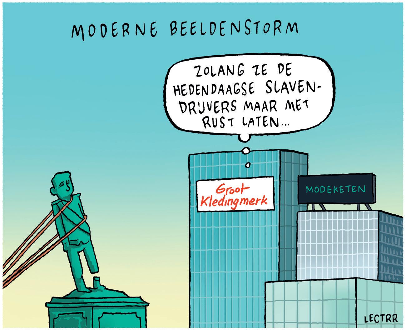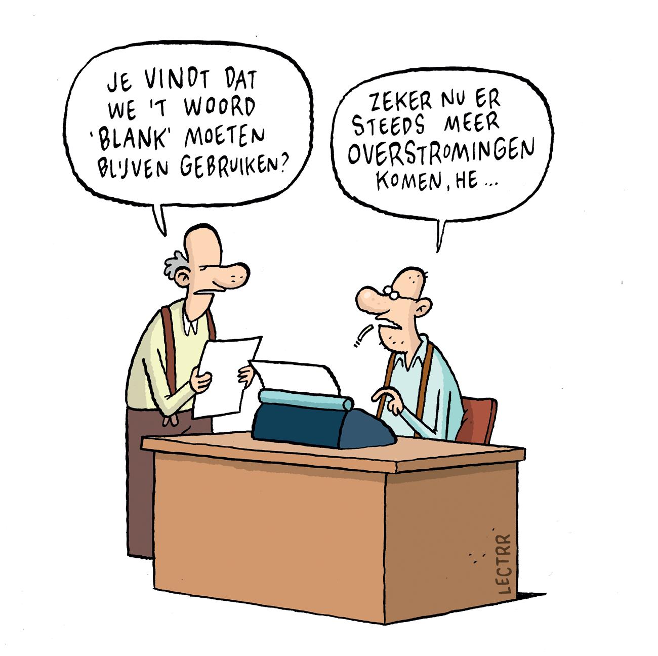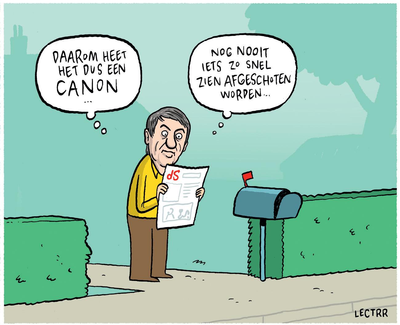 Het copyright van de met schriftelijke toestemming op diverse plaatsen in dit themanummer weergegeven cartoons van Lectrr berust bij de maker Steven Degryse, vertegenwoordigd door Lectrrland bv. De cartoons verschenen eerder in de krant De Standaard en op de website https://lectrr.be/nl en proberen extra perspectieven te bieden en te sensibiliseren. Regelmatig ontstaat rond zijn werk een controverse over de vraag of met humor grenzen overschreden worden of niet. Zie ook Lectrr, We mogen niks meer zeggen, humor, vrije meningsuiting en censuur, Leuven, 2021. Net zoals in de jaren 1820 en 1830 karikaturen (bijvoorbeeld in Le Charivari) de grenzen van de politieke vrije meningsuiting verkenden en verbreedden, zijn er in de jaren 2020 globale tendensen om controverses te verscherpen en te kapen, en humor, meerlagigheid en nuances minder speelruimte te geven. Zie Walter Weyns, Wie Wat Woke? Een cultuurkritische benadering van wat we (on)rechtvaardig vinden, Kalmthout, 2021 voor een duiding.