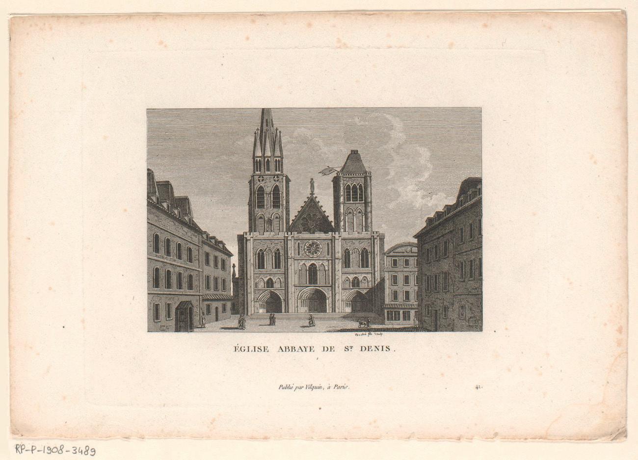 Gezicht op de Kathedraal van Saint-Denis, ets van François Louis Couché, uitgegeven te Parijs in 1818, Rijksstudio, Rijksmuseum Amsterdam, RP-P-1908-3489