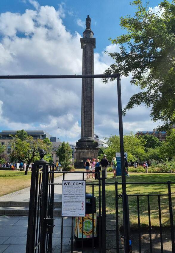 Het Melville Monument in Edinburgh met parateksten in de zomer van 2022 (foto’s: Marc Jacobs)