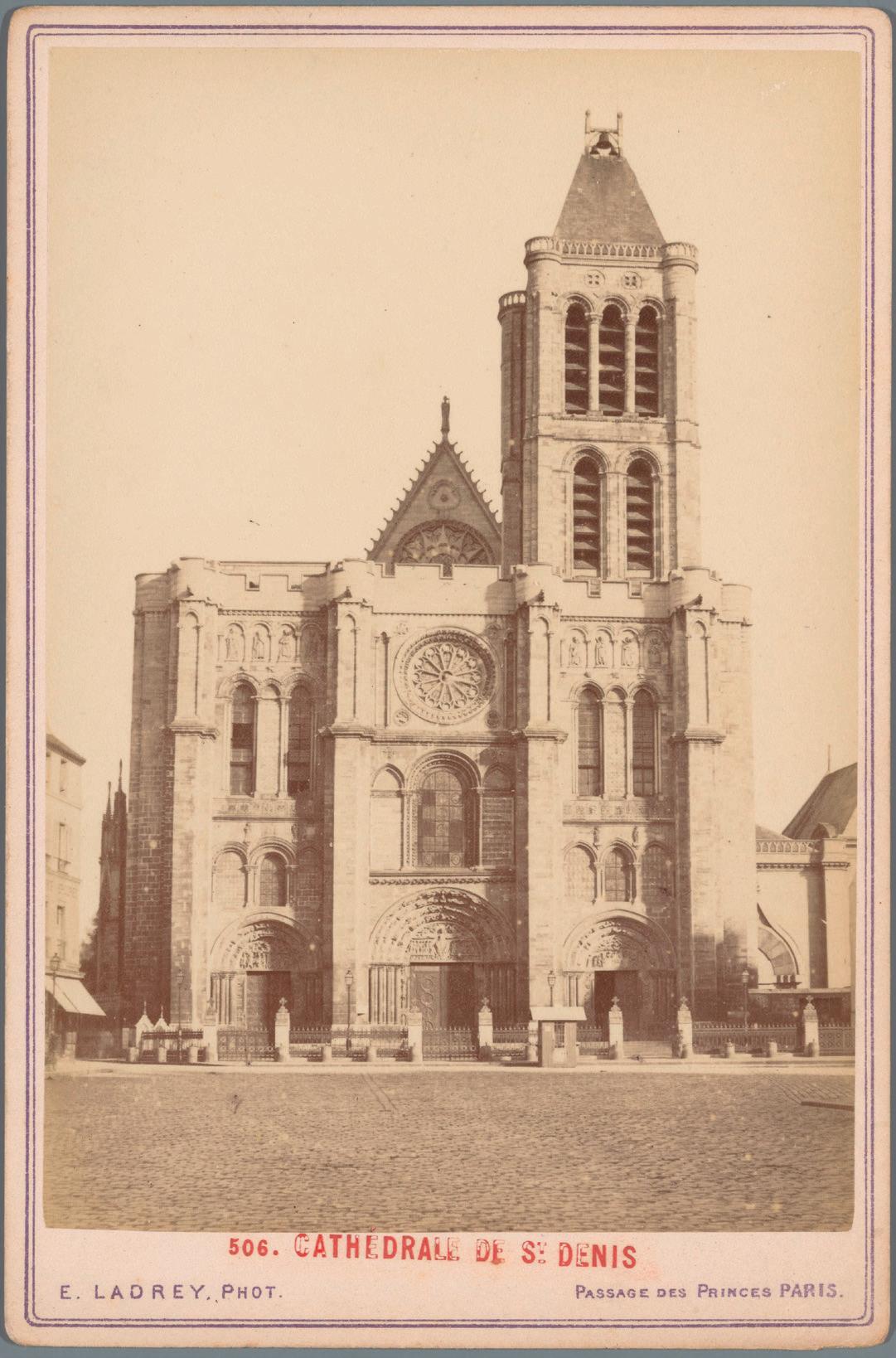 Gezicht op de kathedrale basiliek van Saint-Denis, albuminedruk van Ernest Ladrey, na 1860, Rijksstudio, Rijksmuseum Amsterdam, RP-F-F19756