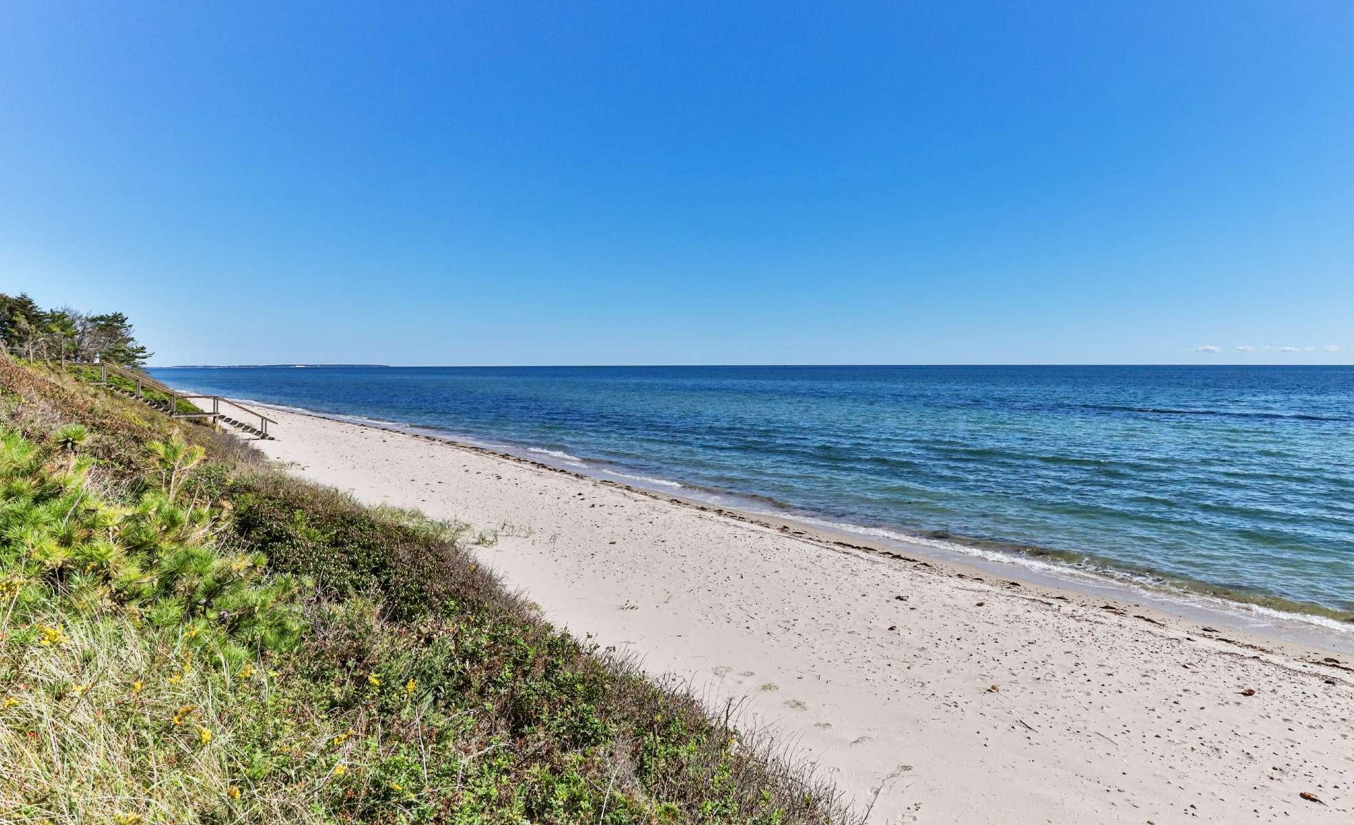 Rolling lawns give way to a pristine stretch of beach on Nantucket Sound, where summer days are spent splashing in the water and lounging in the sand. Enjoy the Cape Cod lifestyle in total privacy, as gentle waves lap the shore right outside your home.