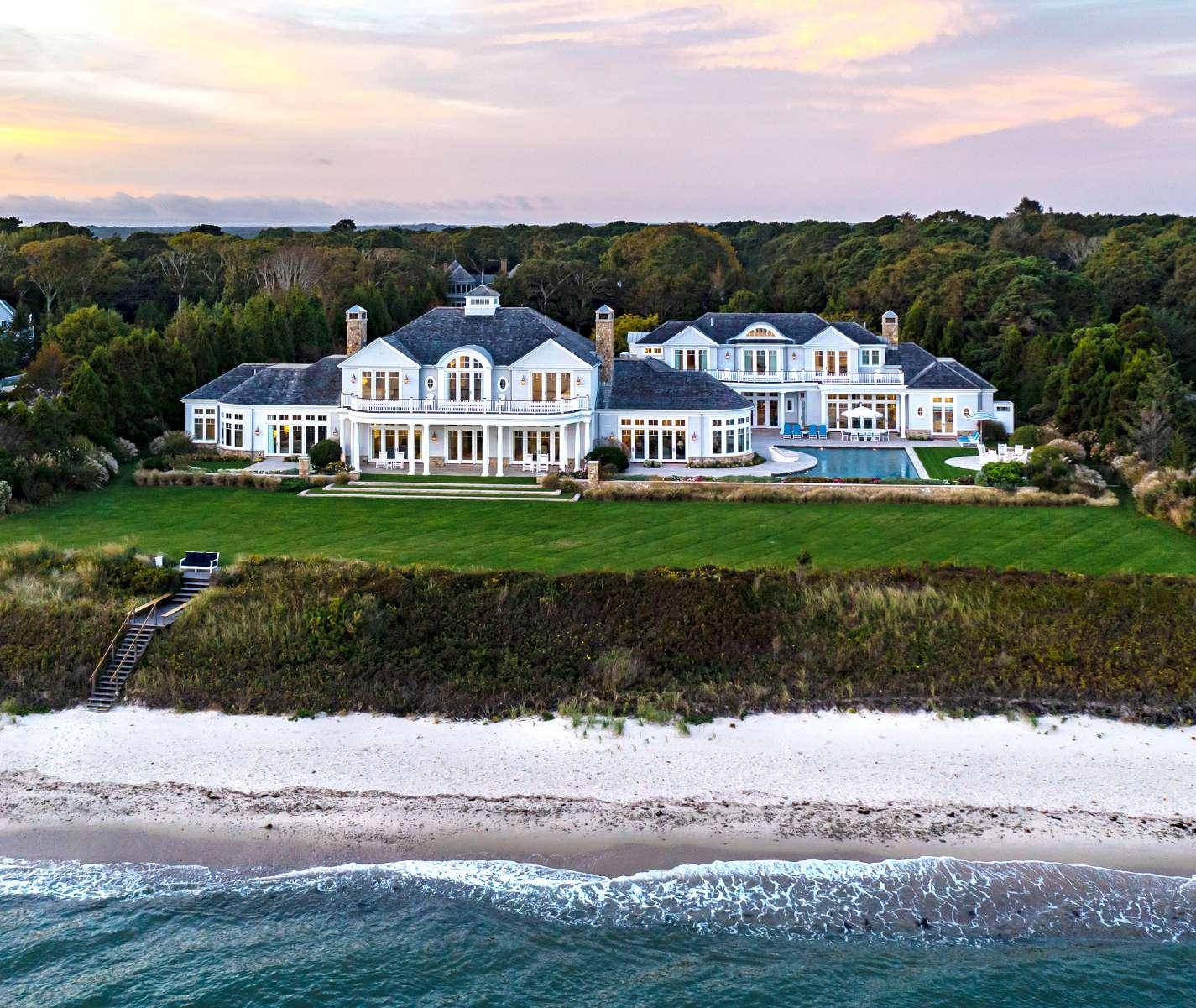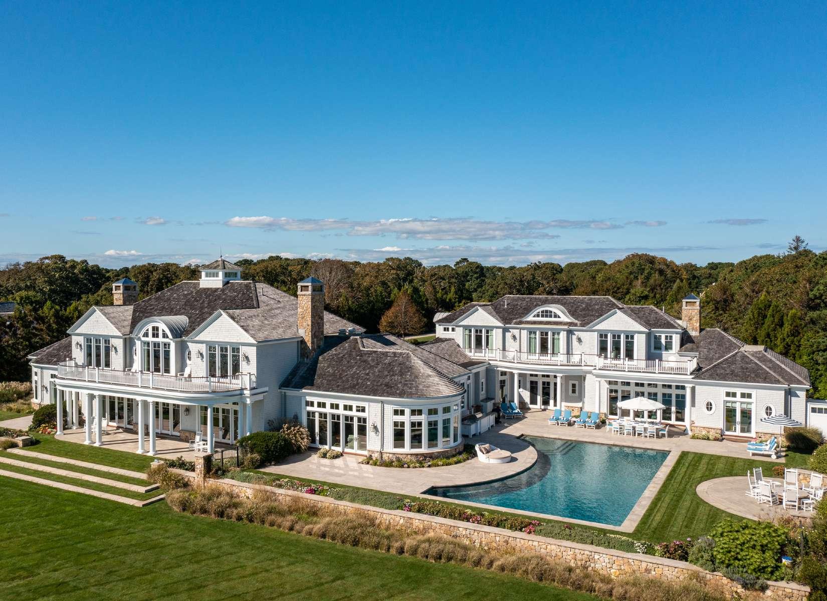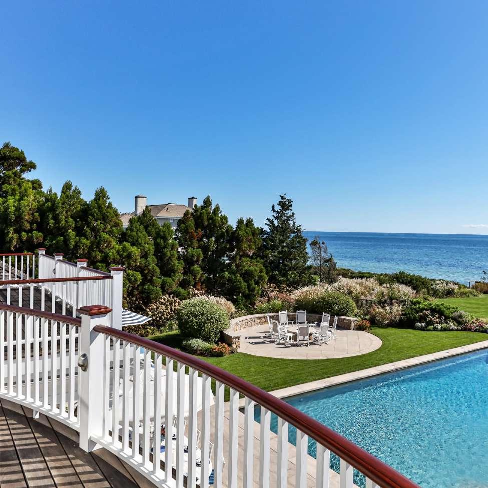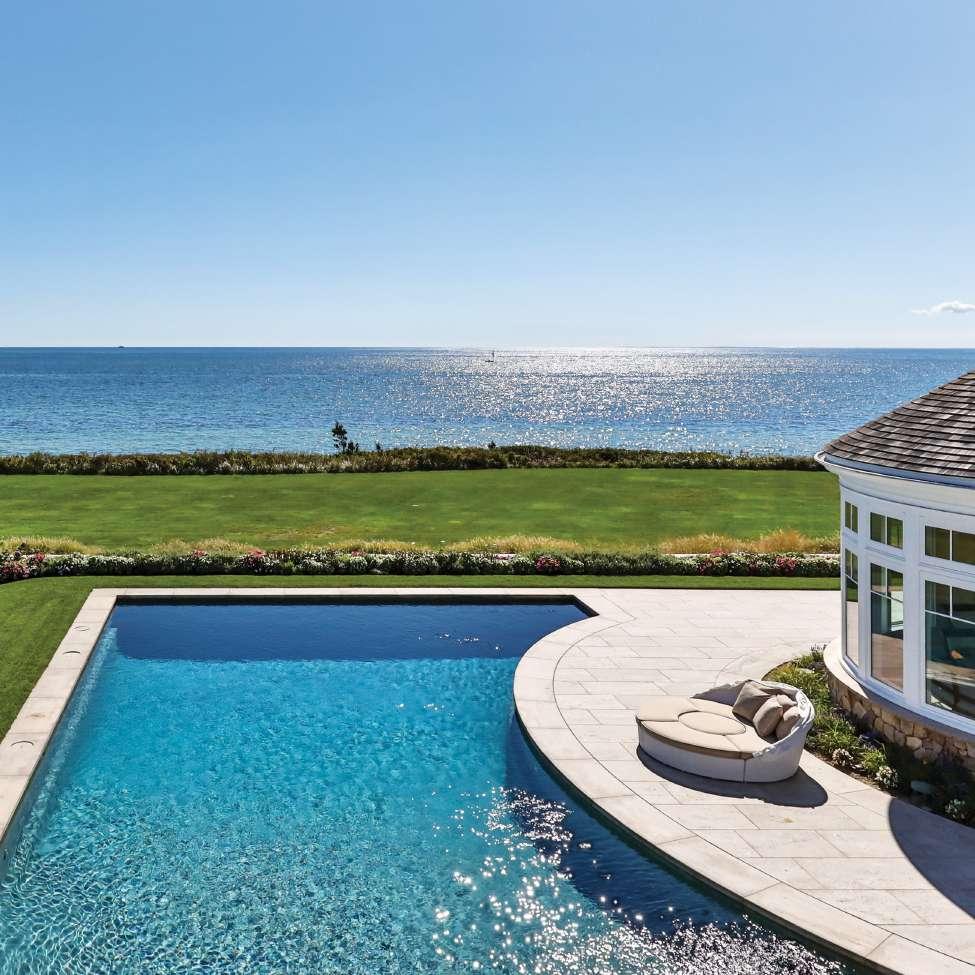 The main outdoor living space is highlighted by a luxurious swimming pool, fully-equipped summer kitchen, natural stone fire pit, and expansive terrace designed for sunbathing and al fresco dining. An enchanting setting that rivals a five-star resort, it is the ideal gathering spot to enjoy the warmer months on Cape Cod, with dramatic views and a gentle sea breeze.