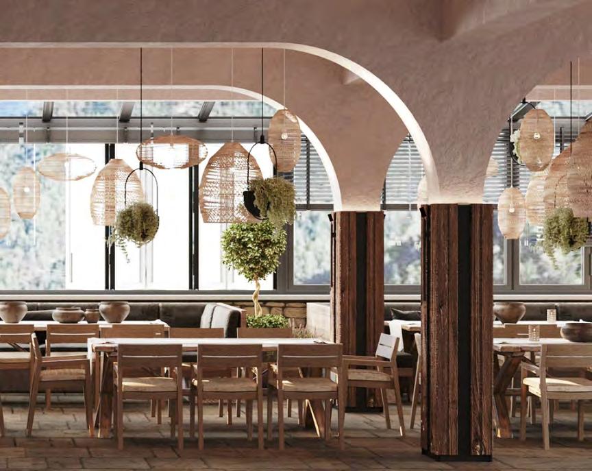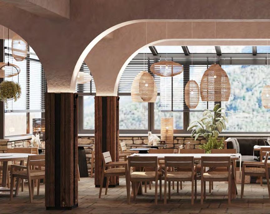 of calm here that isn't designed — it's inherited. The taverna is housed in a repurposed village building, sympathetically updated with a modern rustic touch. Think warm stone walls, natural wood, and minimalist decor that avoids the usual village-restaurant kitsch. It feels authentic because it is—but it’s also clean, calm, and considered.
