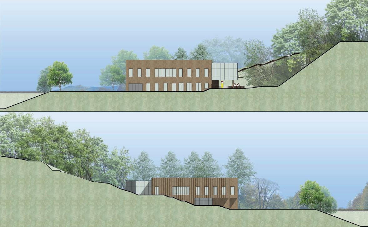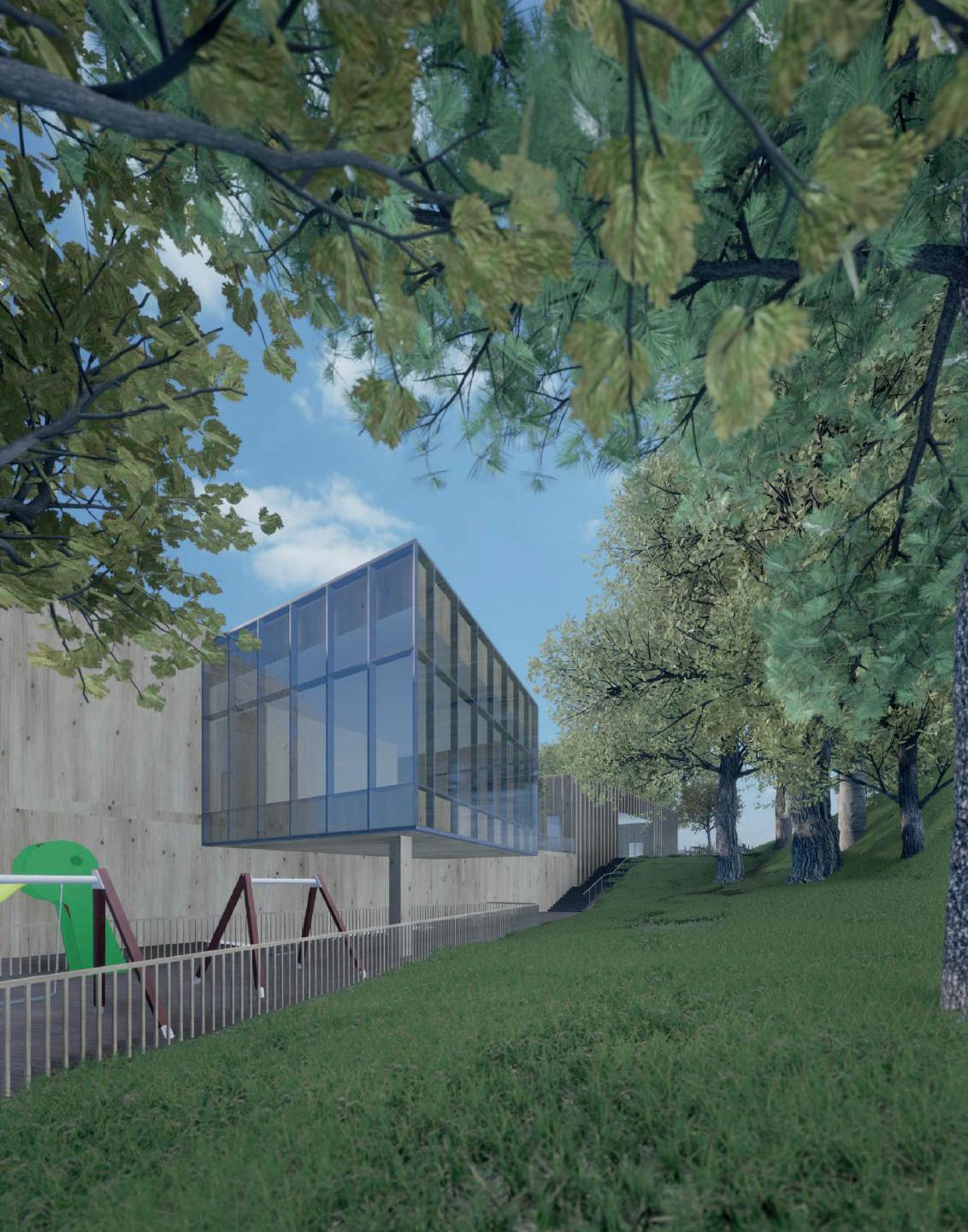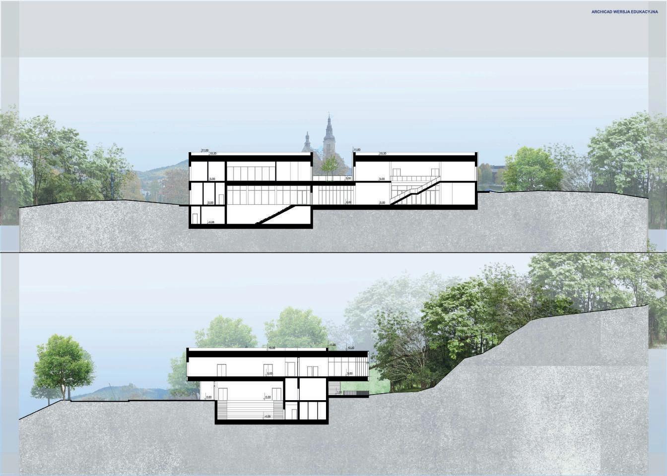 PRZEKRÓJ A-A POKAZUJĄCY LOKALIZACJĘ SALI PRELEKCYJNEJ 1:500