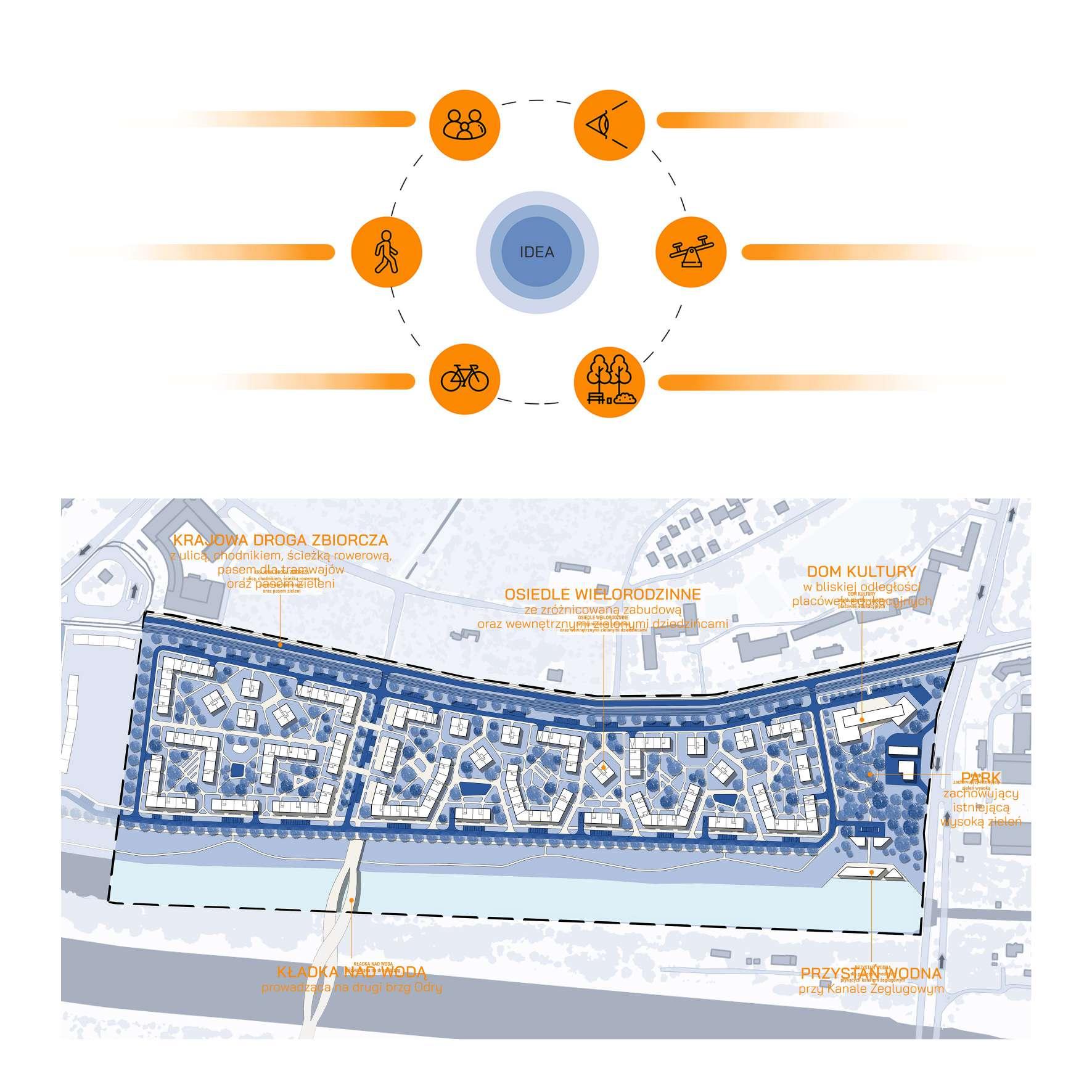 G ó j p h s i n W y p ę o a z cień, a także poprawiają mikroklimat otoczenia Obecność małej architektury, takiej jak ławki, kładki, zróżnicowanie oświetlenie czy stojaki na rowery oraz parterowe usługi z zewnętrznymi ogródkami mają zachęcić mieszkańców i osoby z zewnątrz do spędzania czasu w tej zielonej strefie.