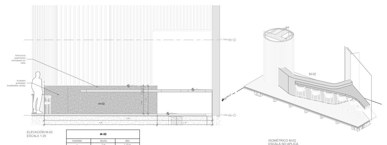 Este proyecto “La porte” es un hotel que actualmente se encuentra en fase de construcción y está ubicado en la vía las palmas, para este encargo mi apoyo estuvo enfocado en los detalles de cada mobiliario del restaurante, estos planos fueron desarrollados en revit, incluso, este es el único proyecto de la oficina que se realiza en este software, pues, todos los demás se planean y ejecuctan desde autocad y sketchup. Por este motivo, este fue un proyecto único pues me permitió desarrollar mis habilidades en revit, permitiendome ahorrar tiempos y ser más precisos.