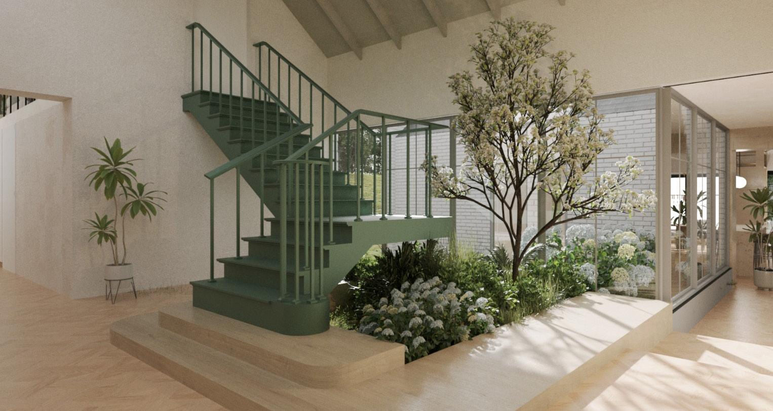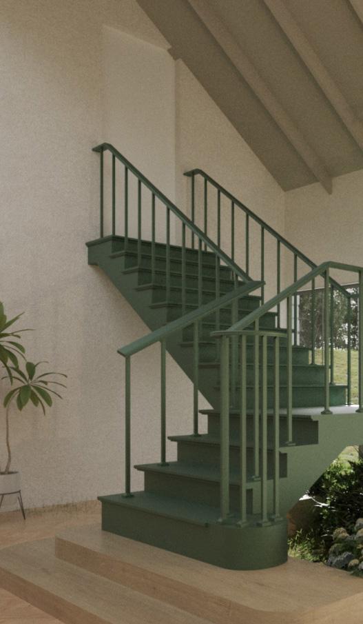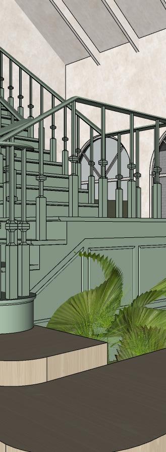 Para este proyecto, estuve apoyando en el diseño de la escalera principal de la casa, la cual tiene por estilo principal el repúblicano, este estilo a menudo incorpora elementos como molduras decorativas, cortinas pesadas y accesorios de lujo, creando un ambiente sofisticado y ordenado. Por tal motivo, para el diseño de la escalera se tuvo presente cada uno de estos elementos logrando transmitir al cliente ese ambiente elegante pero a su vez moderno, incorporando siempre esa relación con la naturaleza.