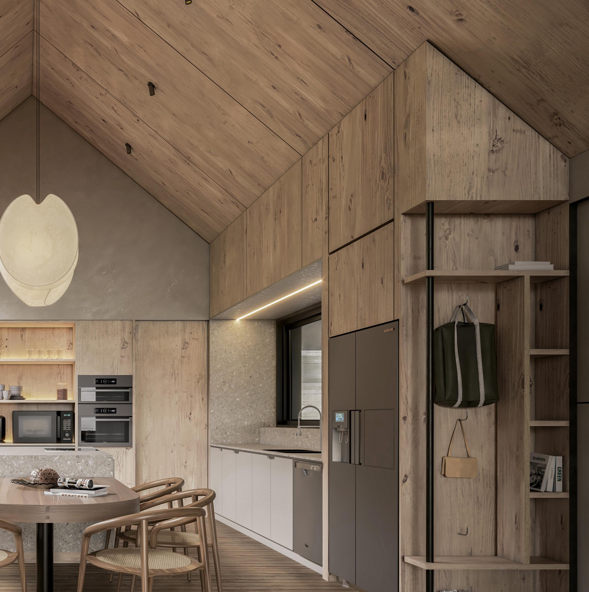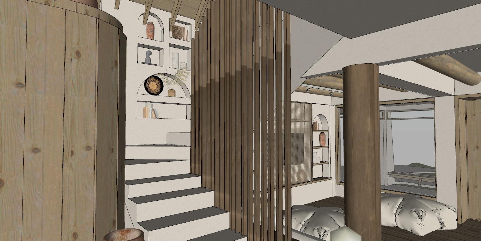 Casa cascabeles fue un encargo en el cual se pidió realizar el diseño de la propuesta para el cliente, en este caso mi apoyo se basó en el diseño de la cocina, la sala de estar, las escaleras, y la habitación principal con su vestier y baño, para este diseño se tuvo en cuenta el estilo Wabi sabi, este destaca la belleza en la imperfección y la modestia, creando ambientes acogedores y serenos mediante el uso de materiales naturales, formas orgánicas y una paleta de colores neutros. Finalmente, vale destacar que todo el modelado se realizó en el software Sketchup.