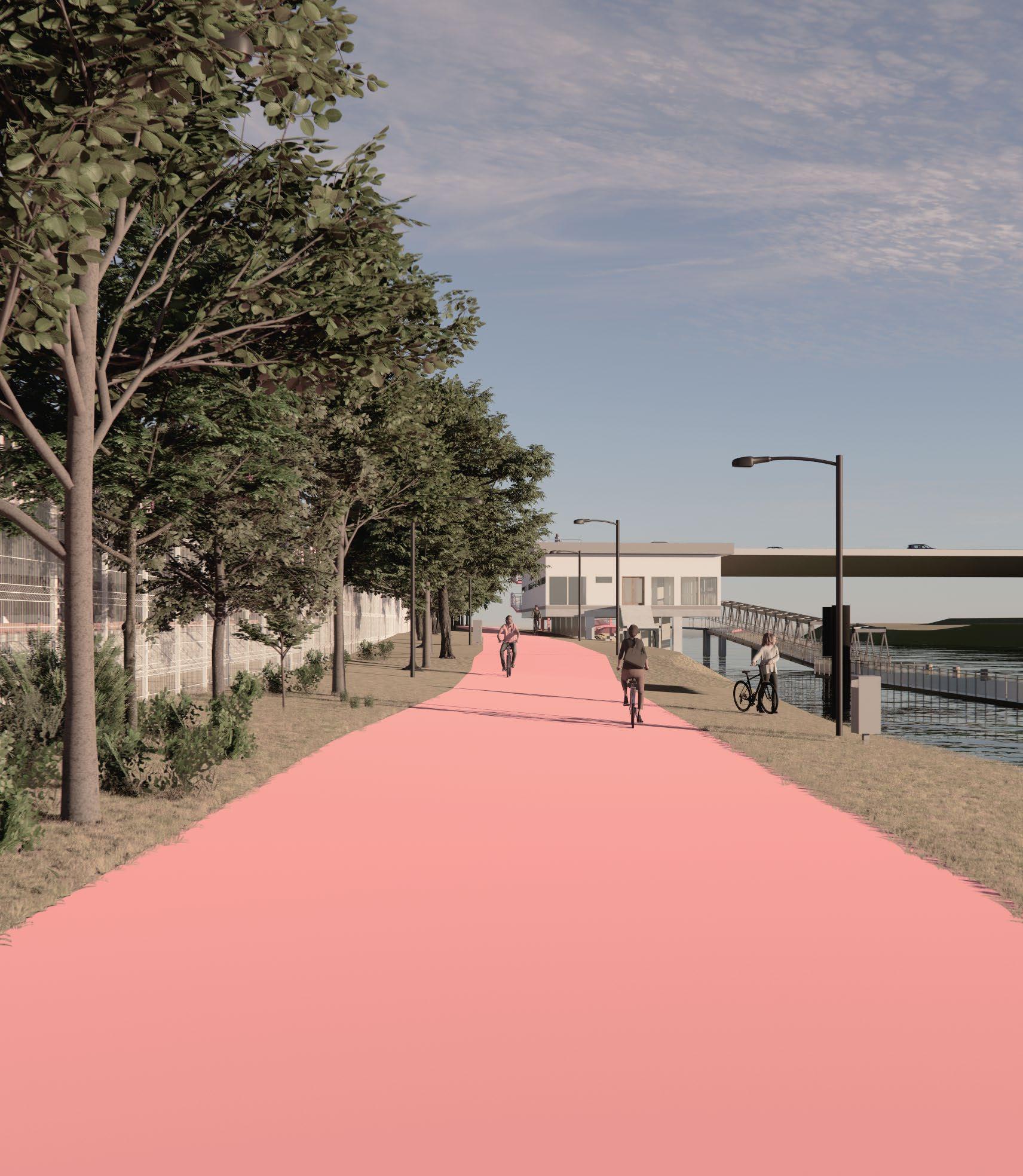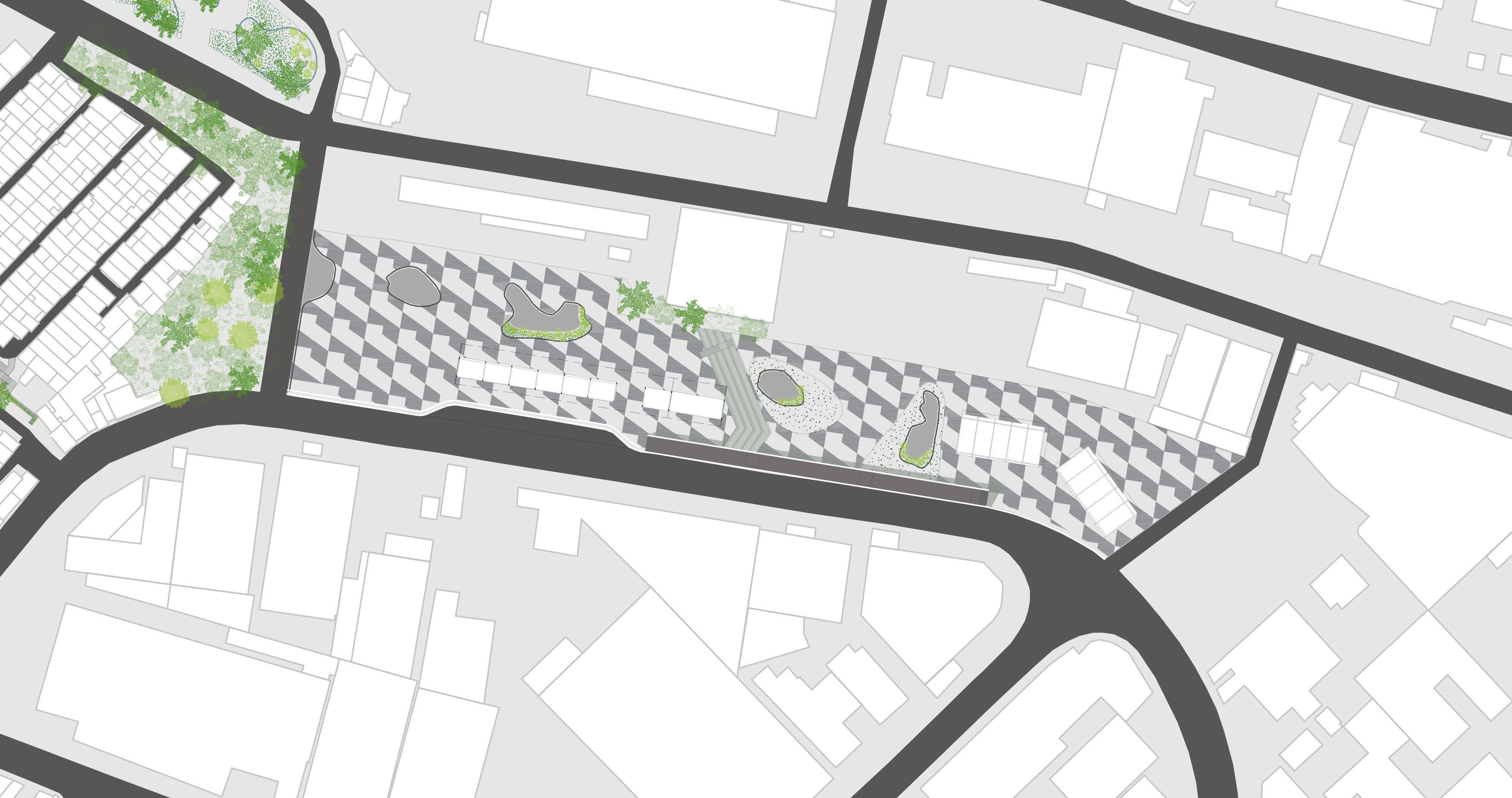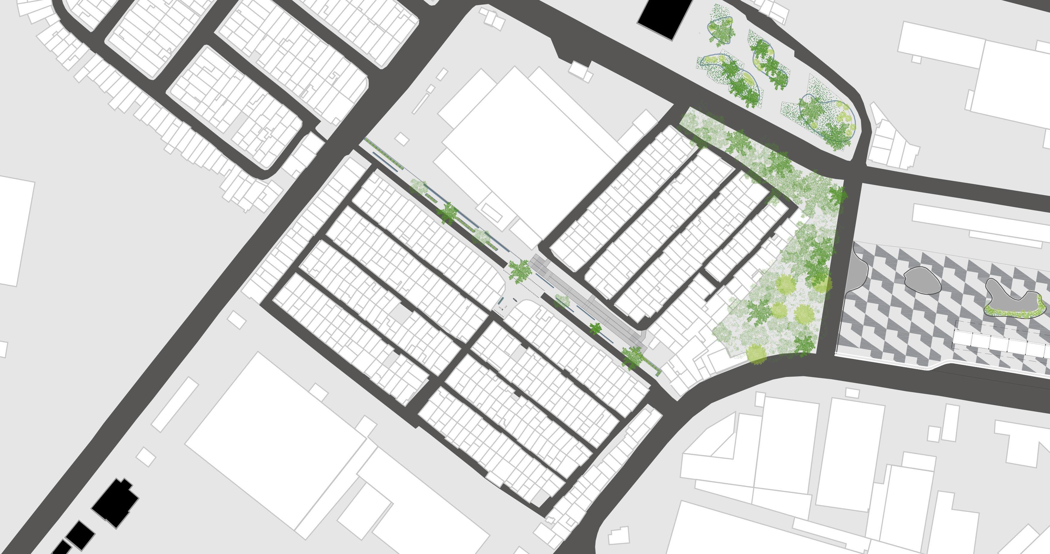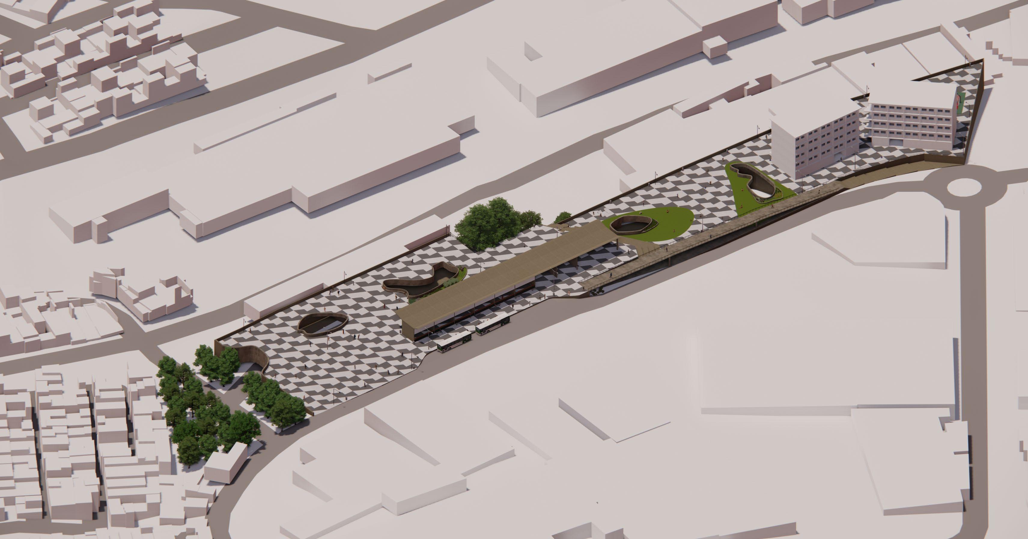 Complementar ao terminal intermodal, foi proposta uma grande praça com quadra poliesportiva e espaços recreativos. Além disso. Também foram inclusos no projeto, dois edifícios residenciais para acomodar os moradores que seriam removidos das zonas de risco localizada a Oeste do terminal.