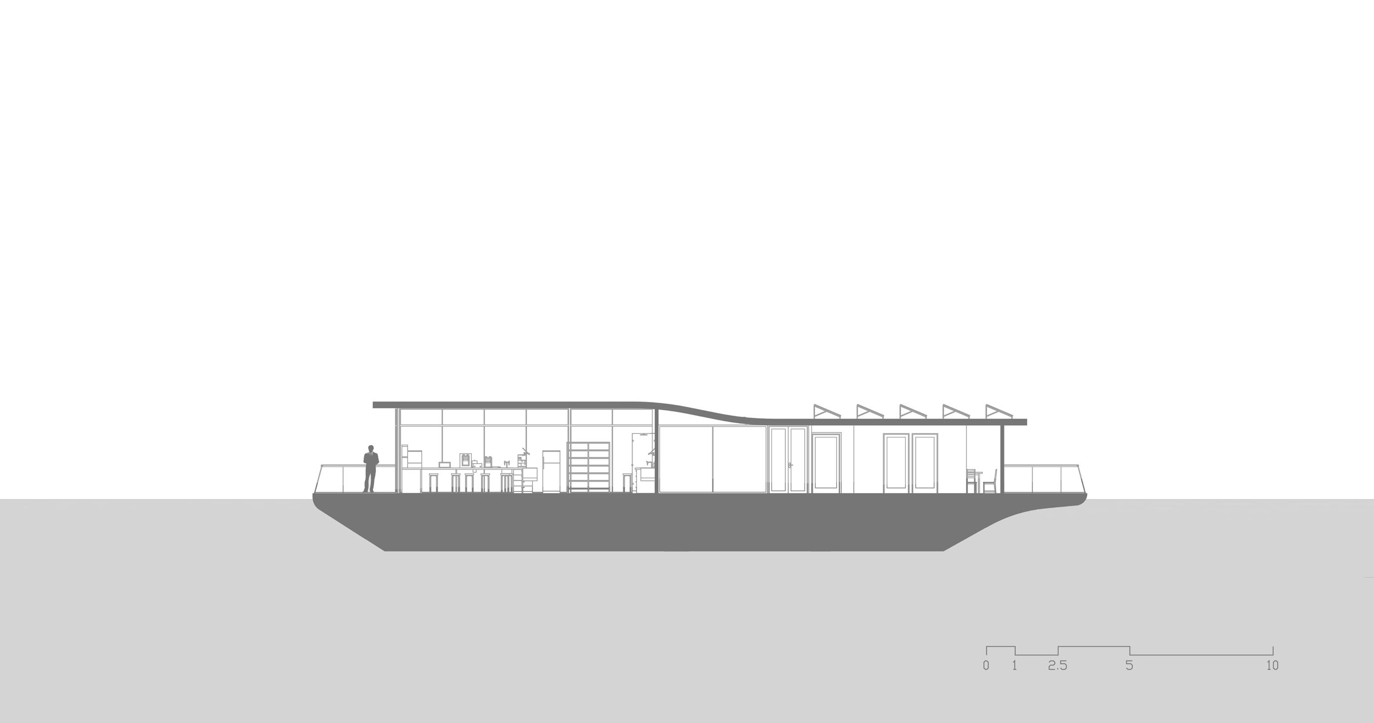 A embarcação laboratório consiste em um flutuante com capacidade total para permitir que os pesquisadores realizem coletas e pequenos testes dos efluentes do rio pinheiros. Para facilitar o acesso dos pesquisadores ao flutuante pelas margens do rio, foi necessário implementar um pontão fluvial, que se conecta diretamente tanto com o edifício margem (e consequentemente com a ciclovia da marginal), quanto com a passarela da ponte da cidade universitária.