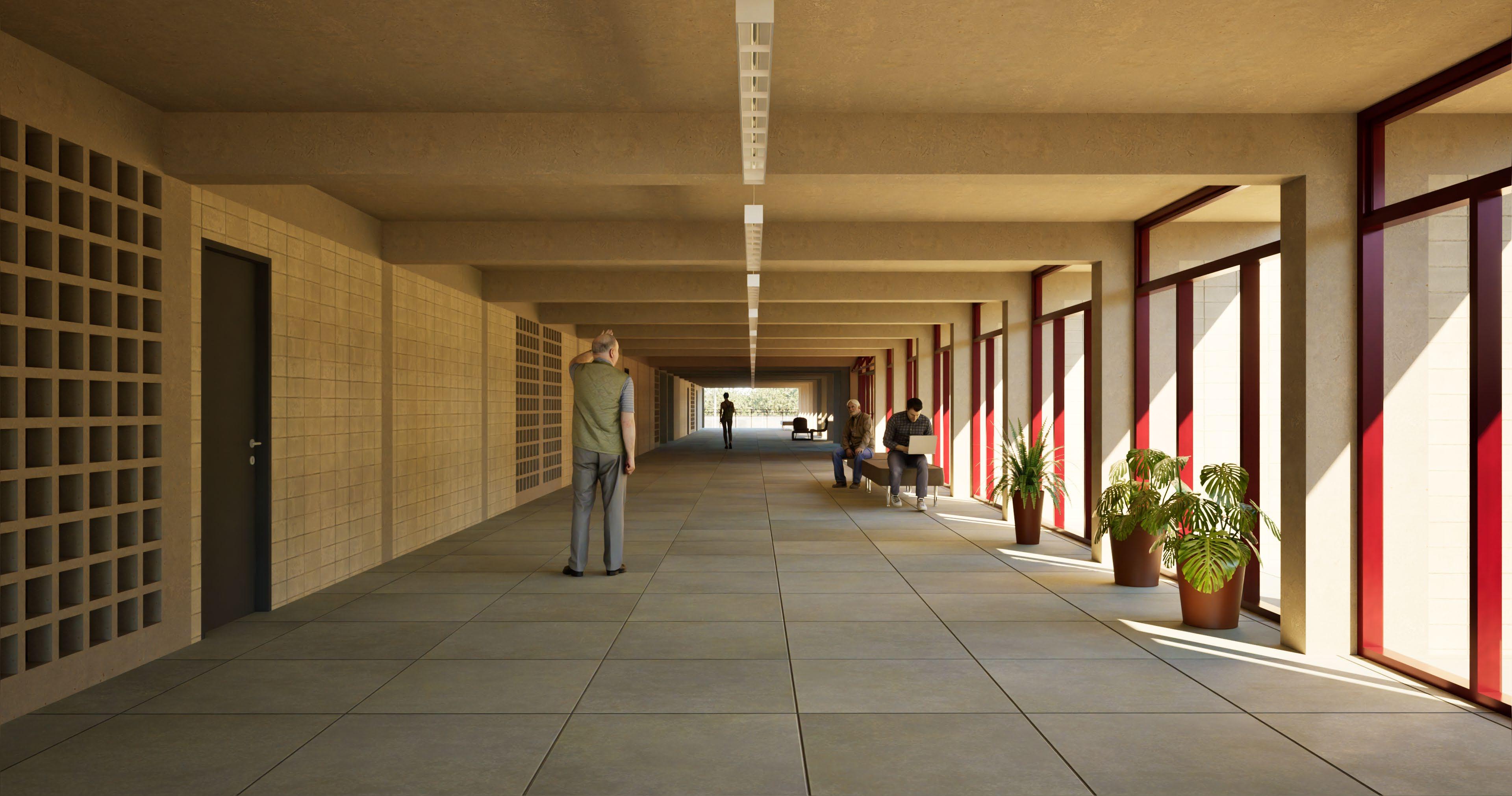 No segundo pavimento, está a área administrativa, com escritórios, uma sala de reunião e uma biblioteca para lazer. Já o terceiro pavimento abriga o solário e a piscina, equipada com vestiários e sanitários acessíveis. Esses espaços oferecem aulas de natação e hidroginástica, além de atividades ao ar livre, promovendo convivência e bem-estar para os moradores